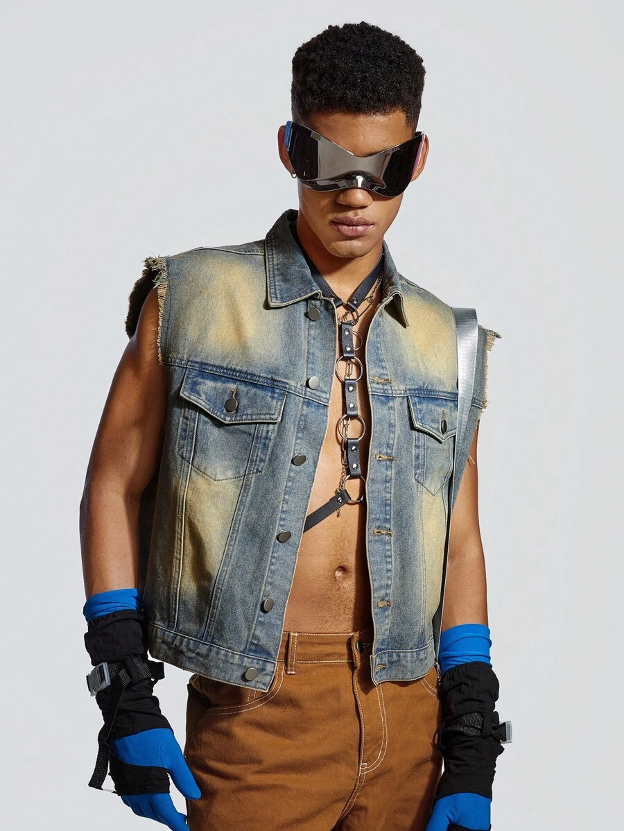 ROMWE Avant Hombres Cazadora chaleco con bolsillo con solapa mezclilla