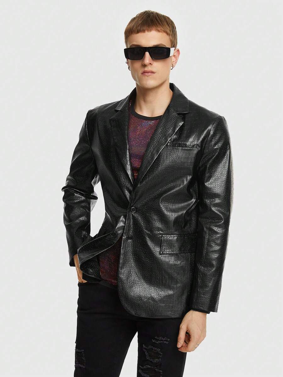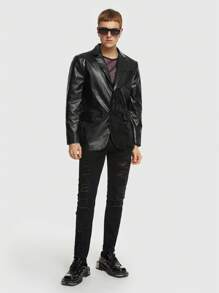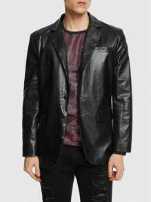 ROMWE Avant Hombres Blazer de cuello con solapa con botón PU