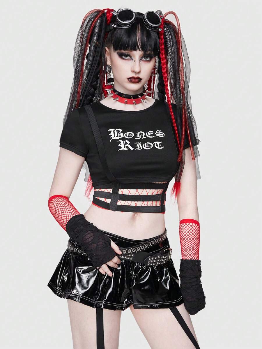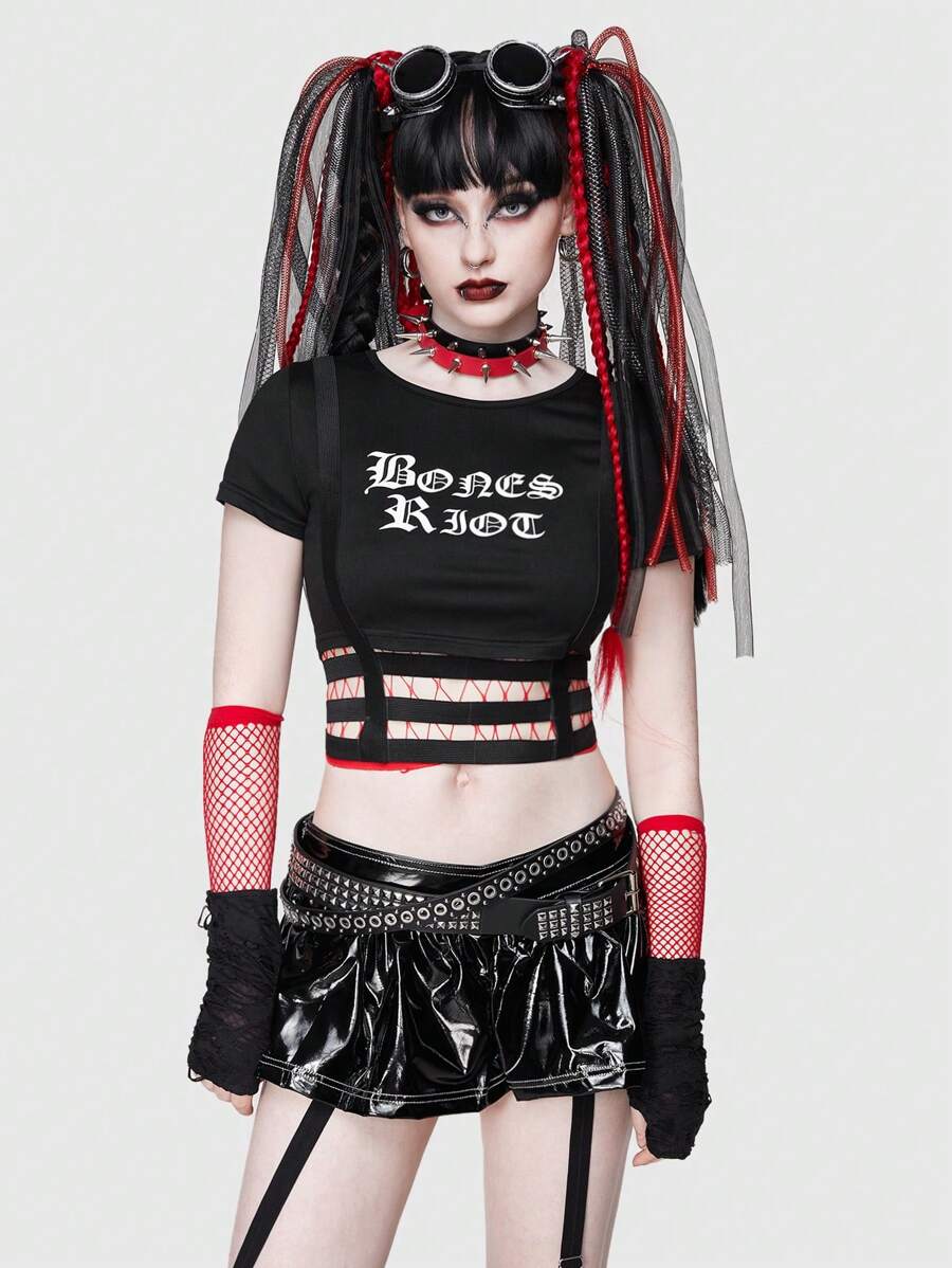 ROMWE Avant Camiseta Corta Ahuecada Con Estampado De Letras