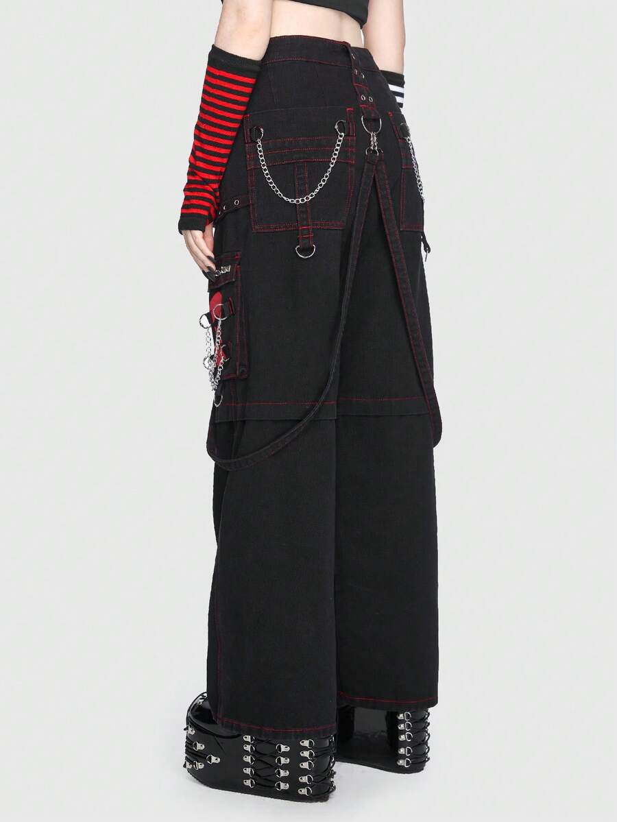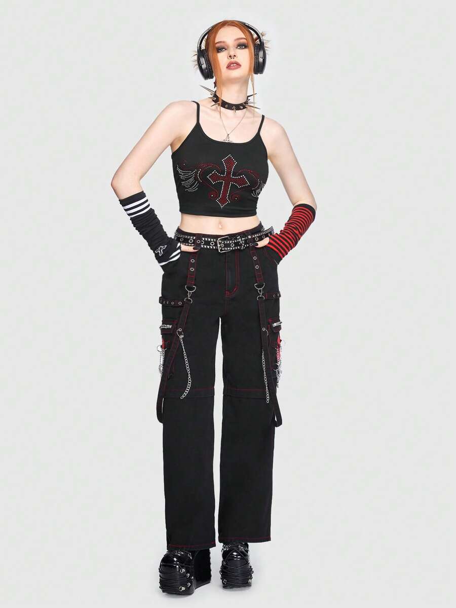 ROMWE Avant Jeans Holgados De Carga Para Hombre Con Detalles De Hebilla, Costuras Y Estampado De Calavera