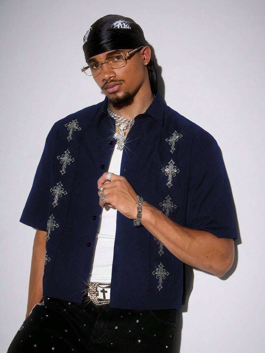 ROMWE Avant Camisa corta casual y de estilo punk con botones para hombre