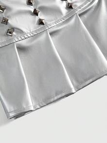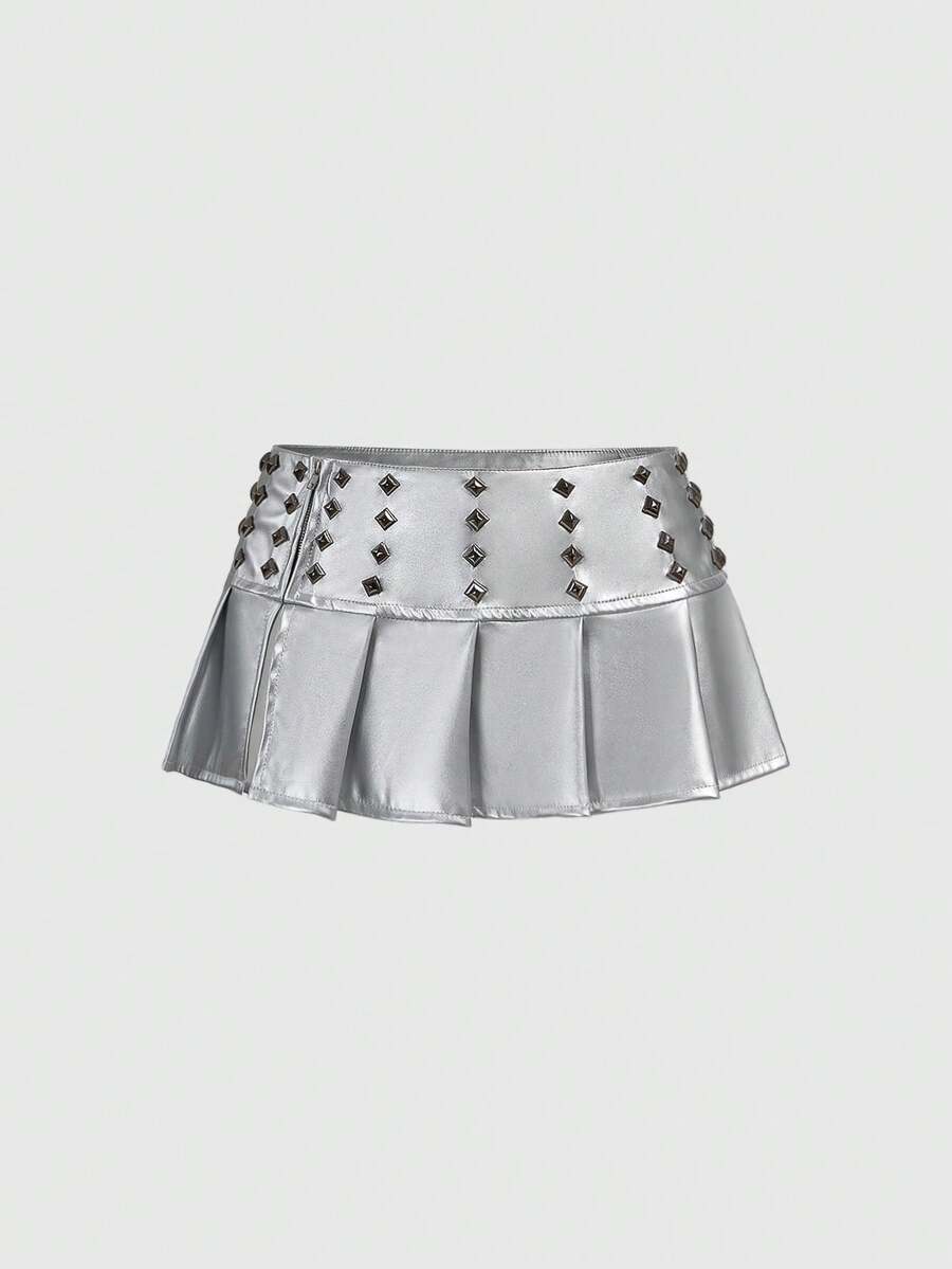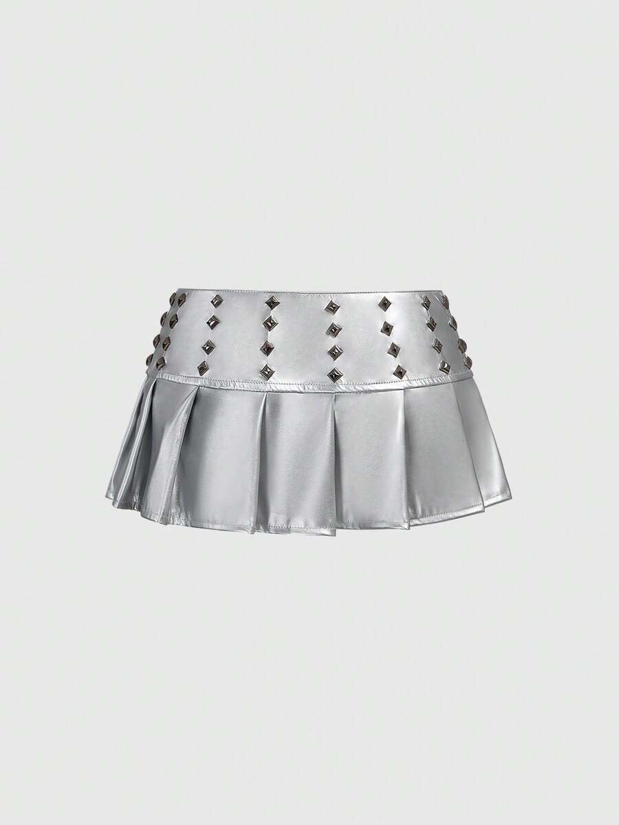 ROMWE Avant Falda de mujer con decoración de pliegues, cintura súper baja, remaches y estilo punk para festival de música