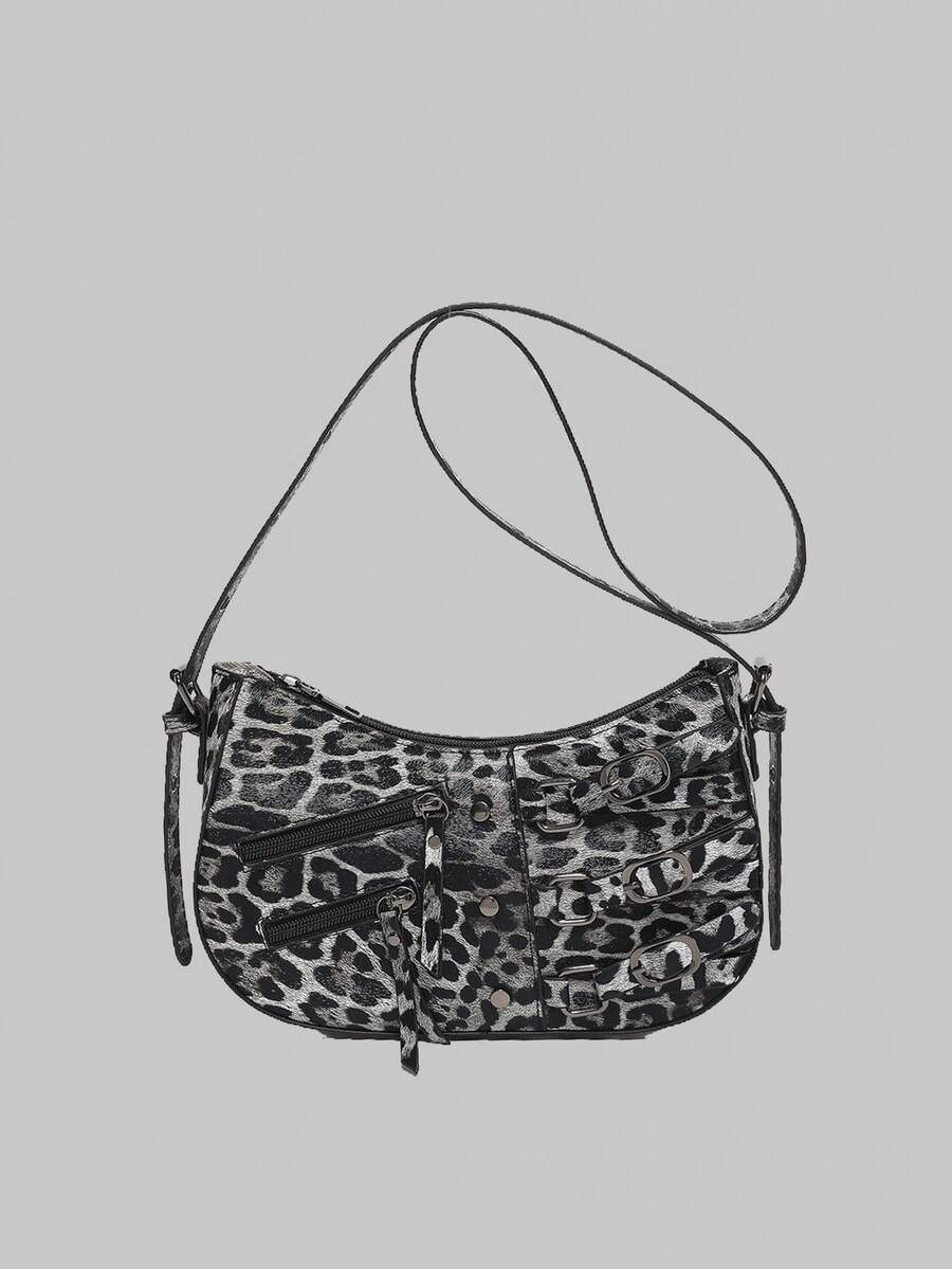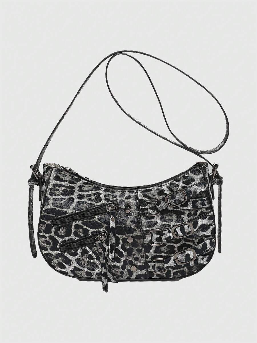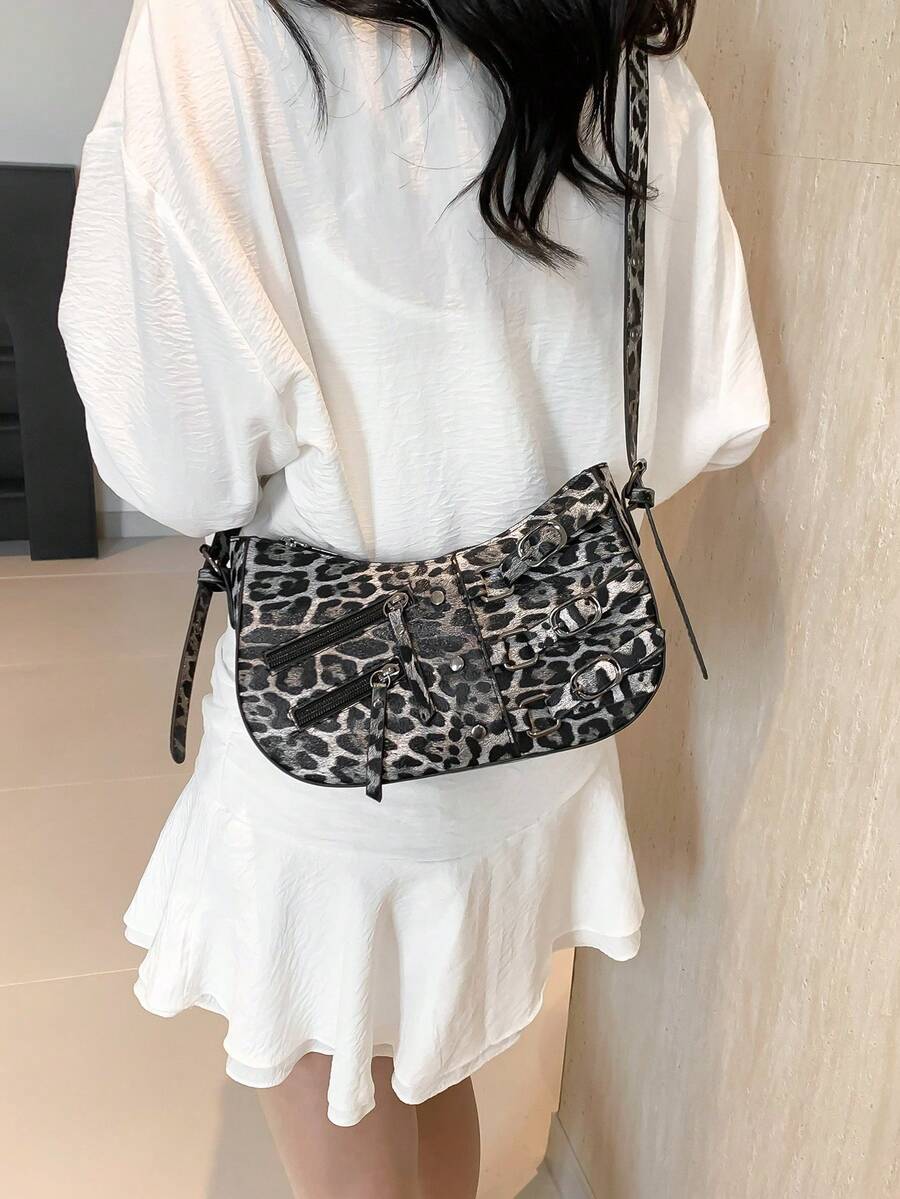 ROMWE Avant Nuevo bolso de hombro de moda para mujer, con estampado de leopardo y estilo punk, bolso cruzado casual
