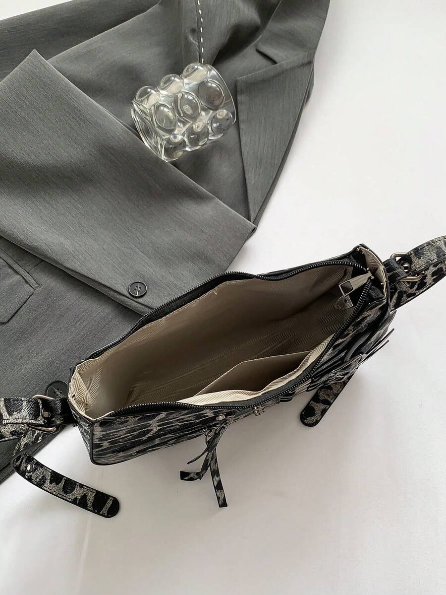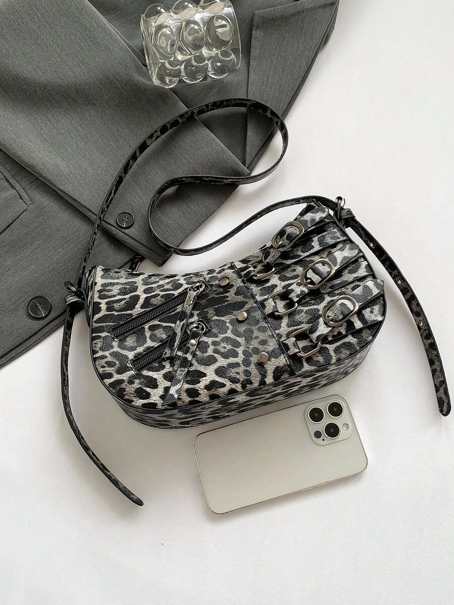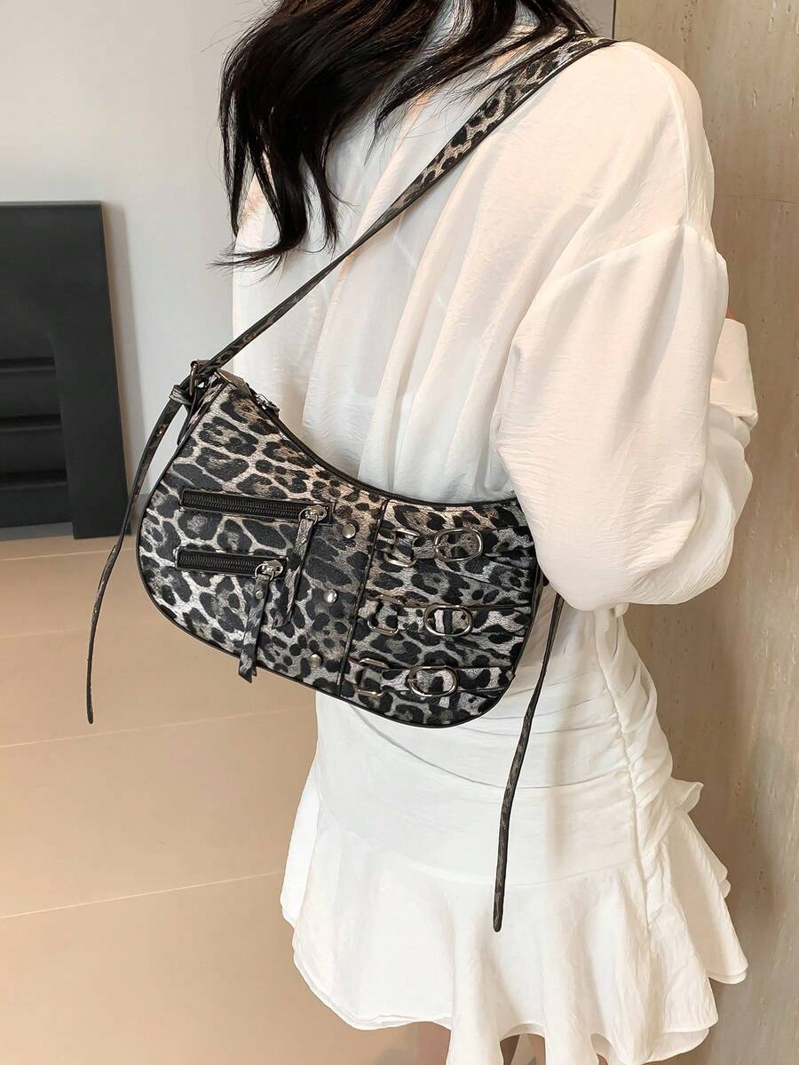 ROMWE Avant Nuevo bolso de hombro de moda para mujer, con estampado de leopardo y estilo punk, bolso cruzado casual