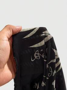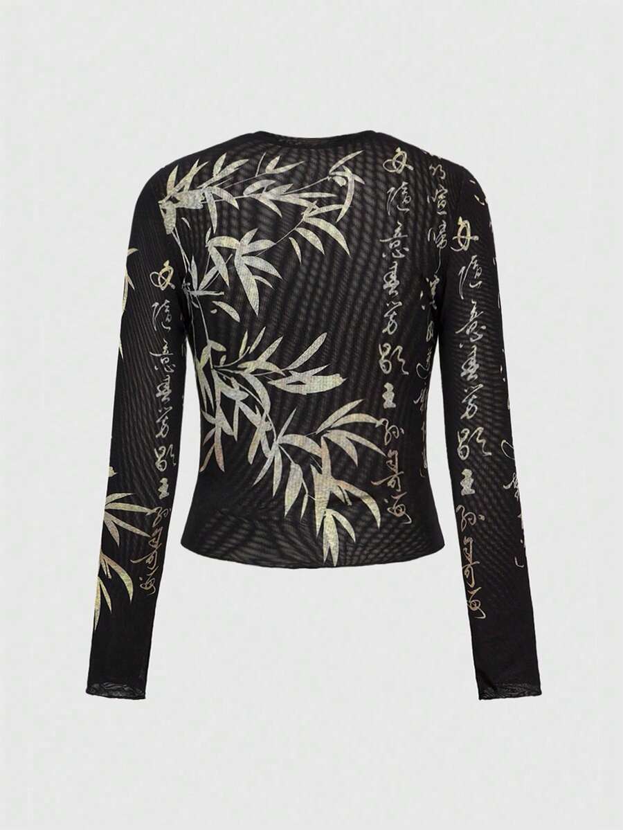 ROMWE Avant Blusa de talla grande para mujer con estampado de caligrafía de tigre y hojas de bambú en estilo chino