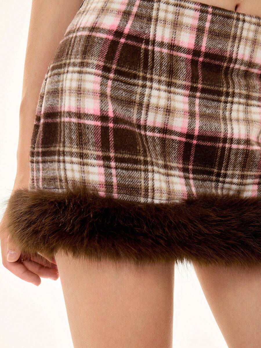 ROMWE Avant Falda mini con flecos de cintura baja de mezcla de lana vintage retro dulce