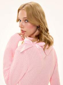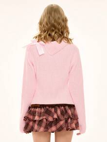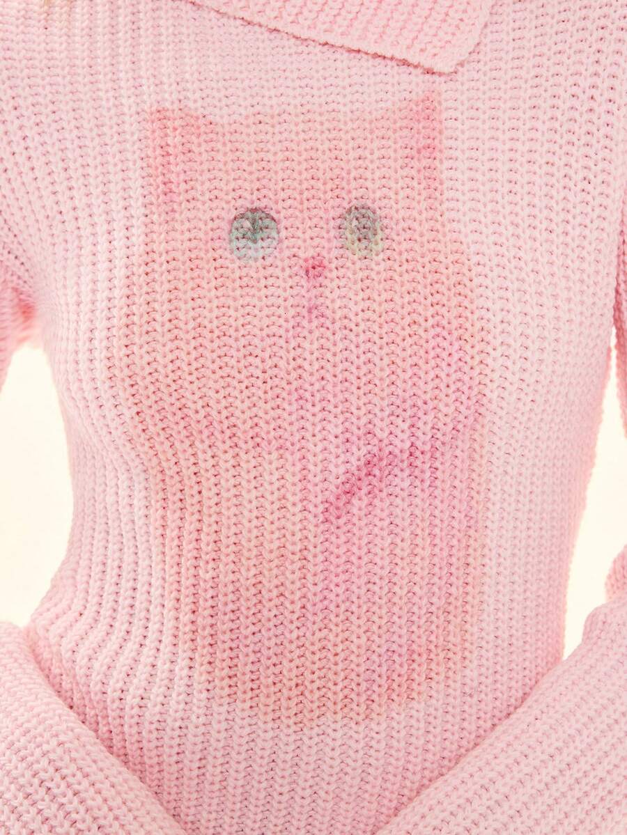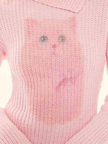 ROMWE Avant Suéter de cuello alto de punto con estampado vintage de gatitos y lazo