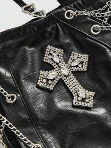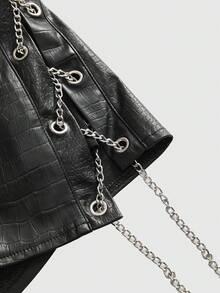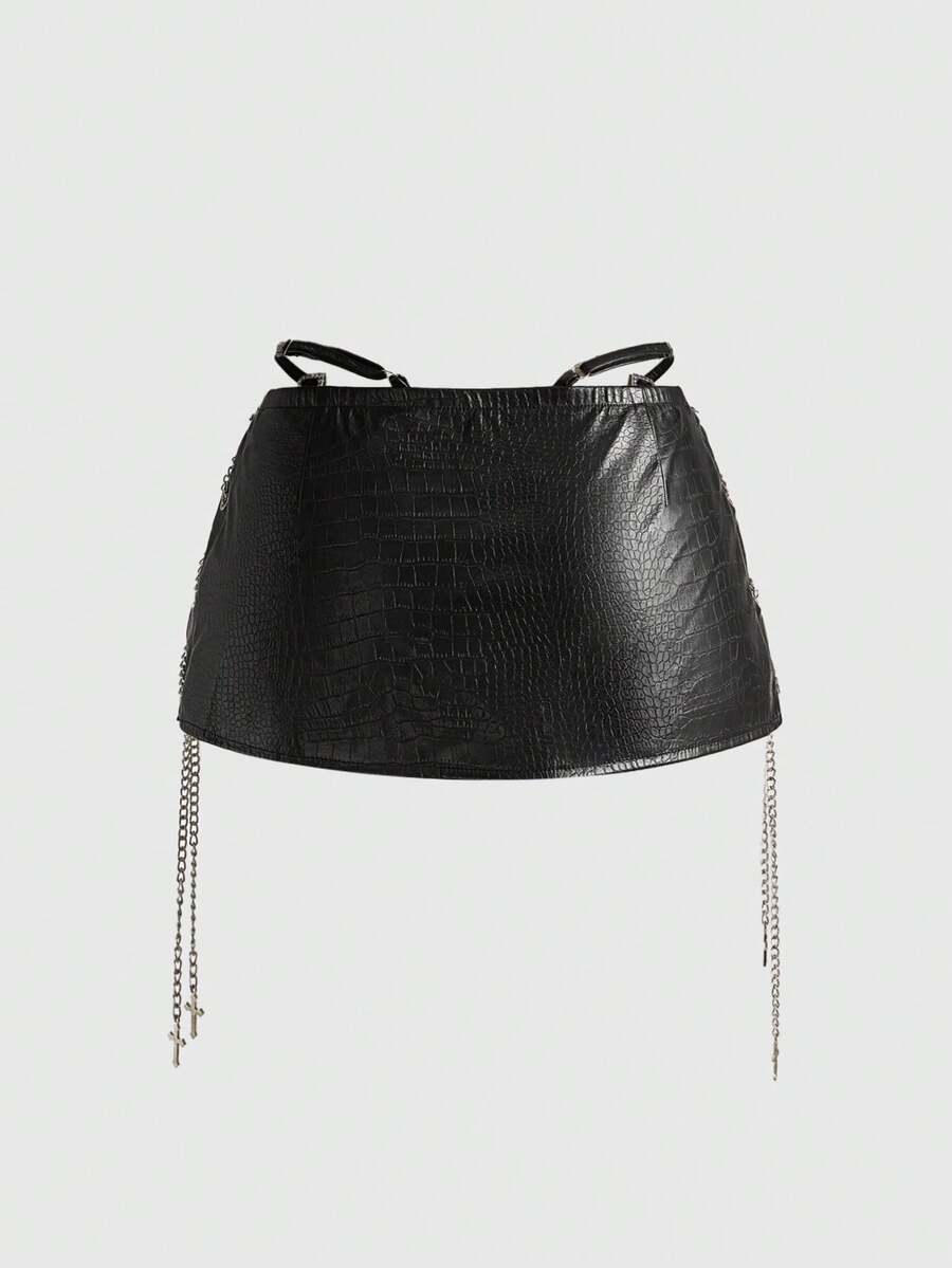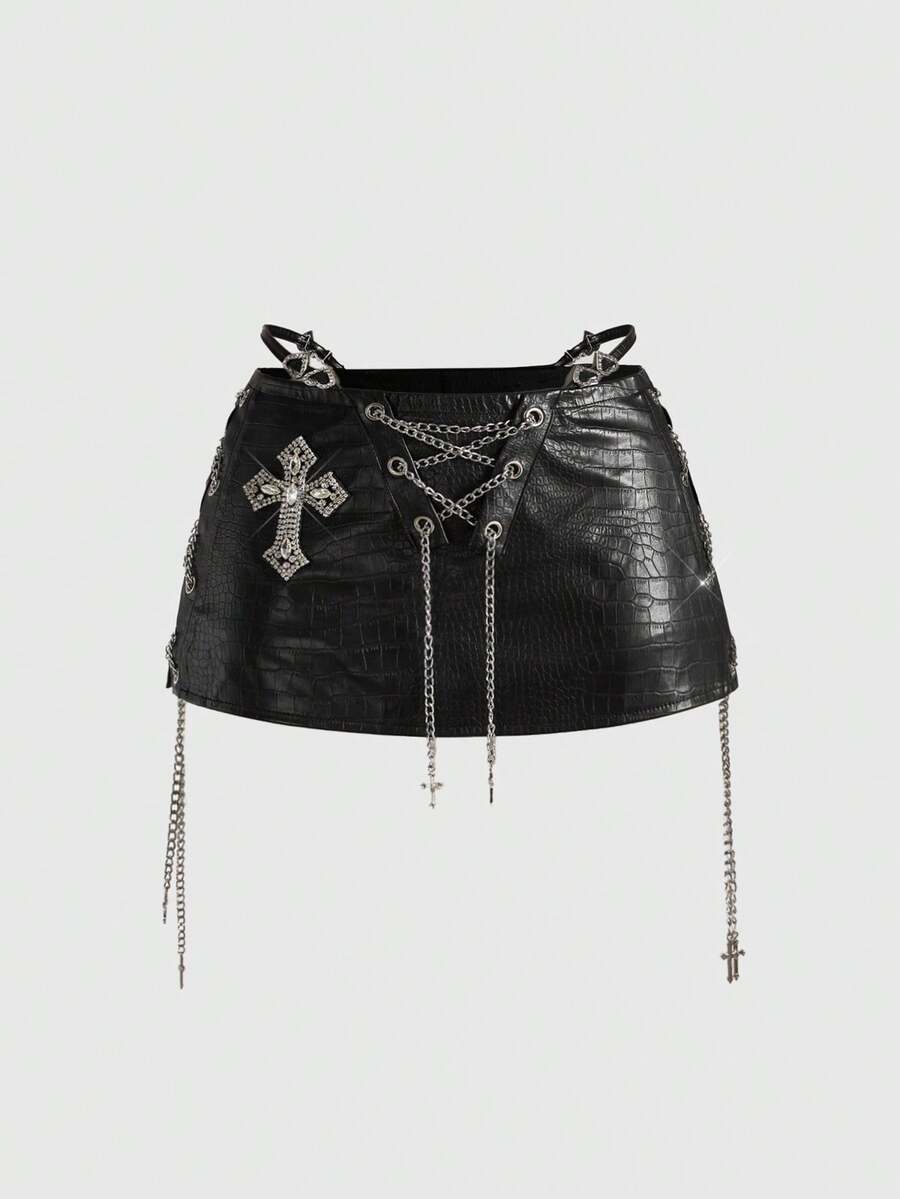 ROMWE Avant Minifalda ajustada de cintura súper baja con decoración de accesorio de motociclista retro Gyaru para mujer