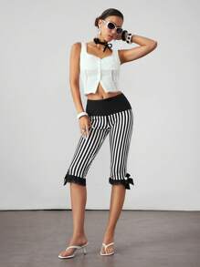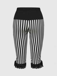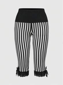 ROMWE Avant Pantalones 7/8 de mujer con bloqueo de color, estilo retro del sur de Europa, sicilianos, con rayas, encaje y parches con lazo