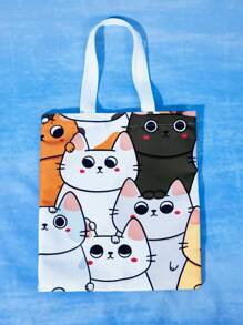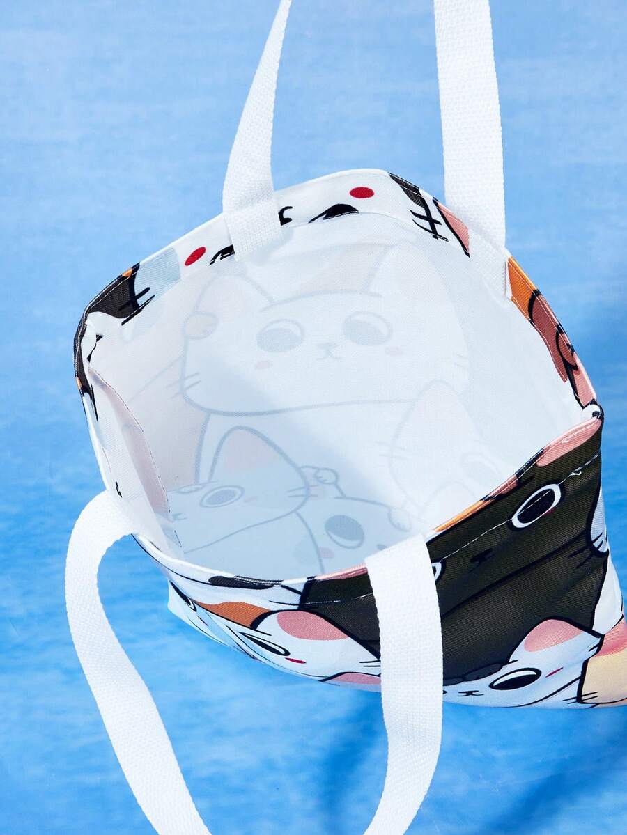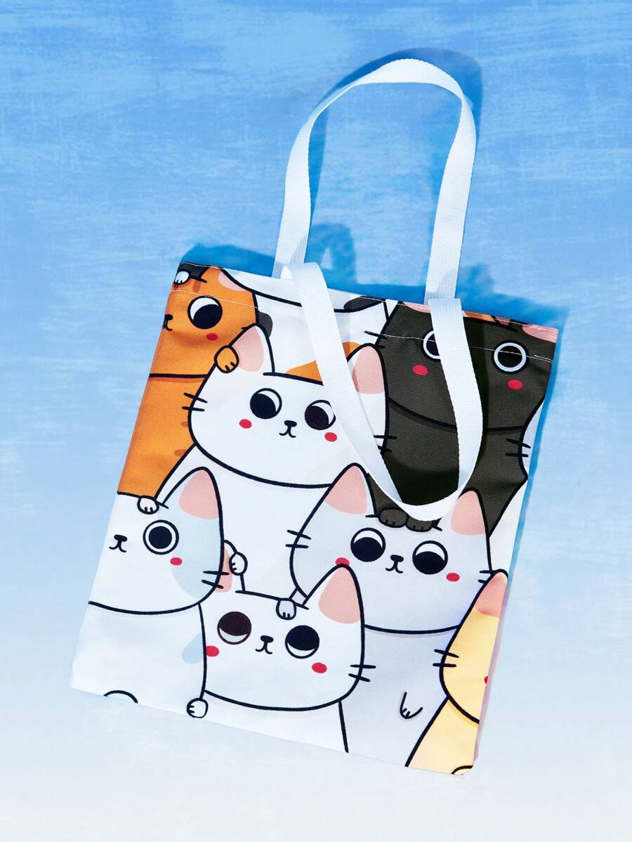 AKIKODRAWS Bolsa de compras amplio dibujos animados lindo con estampado de gato para laboral