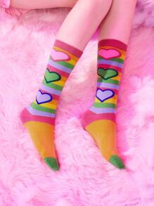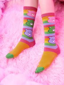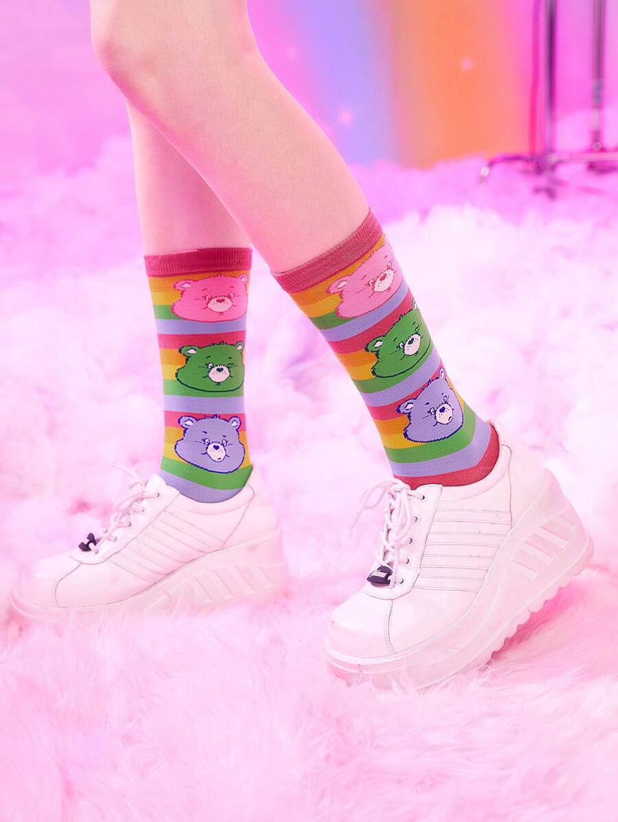 ROMWE X Care Bears Mujer 1 par Calcetines altos con corazón & con patrón de oso de dibujos animados