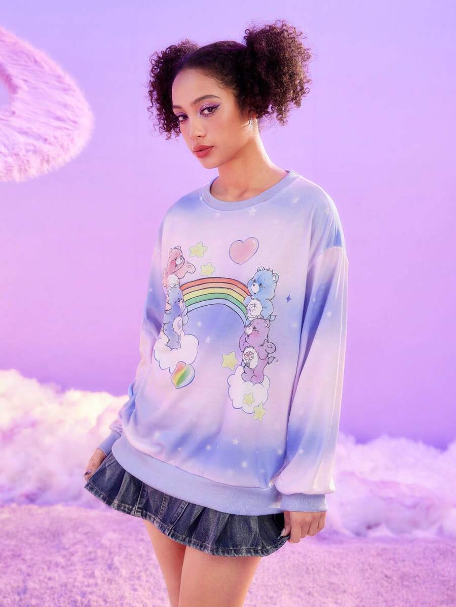 ROMWE X Care Bears Sudadera Con Hombros Caídos Y Estampado De Dibujos Animados Para Mujer