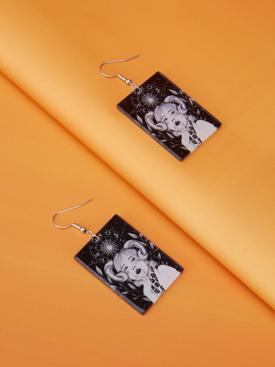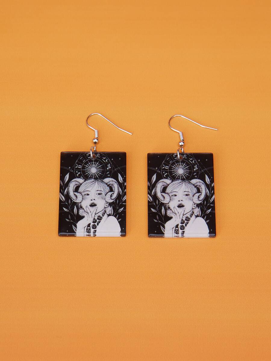 Herminedecrayon Pendientes largos Aries con estampado de figura