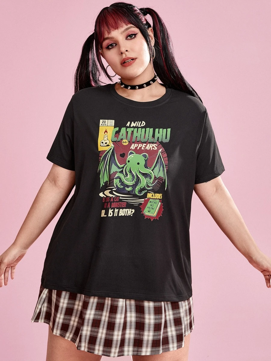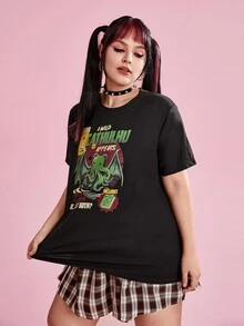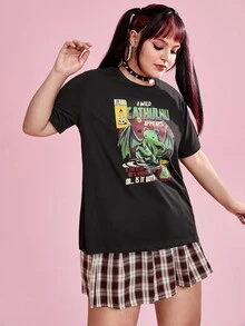 Ilustrata Camiseta con estampado de dibujos animados y letra