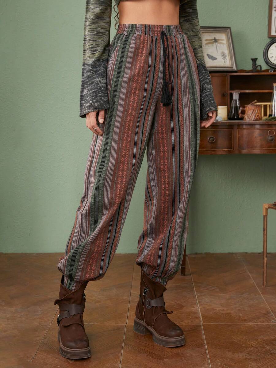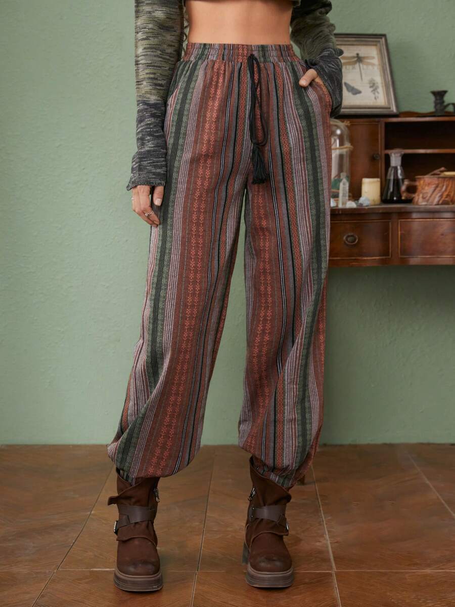 Hippie Pantalones con estampado de rayas de cintura con nudo