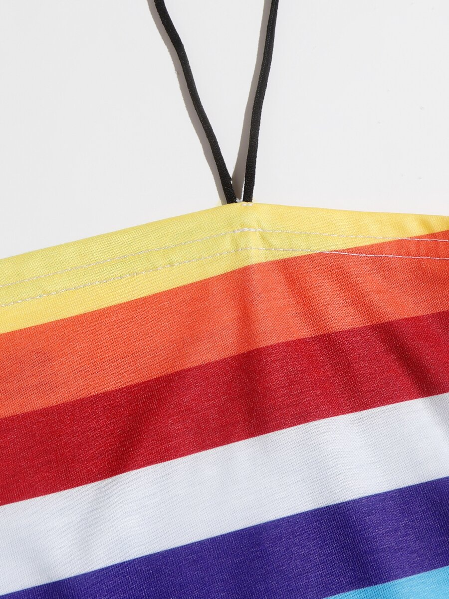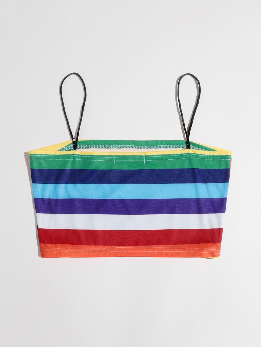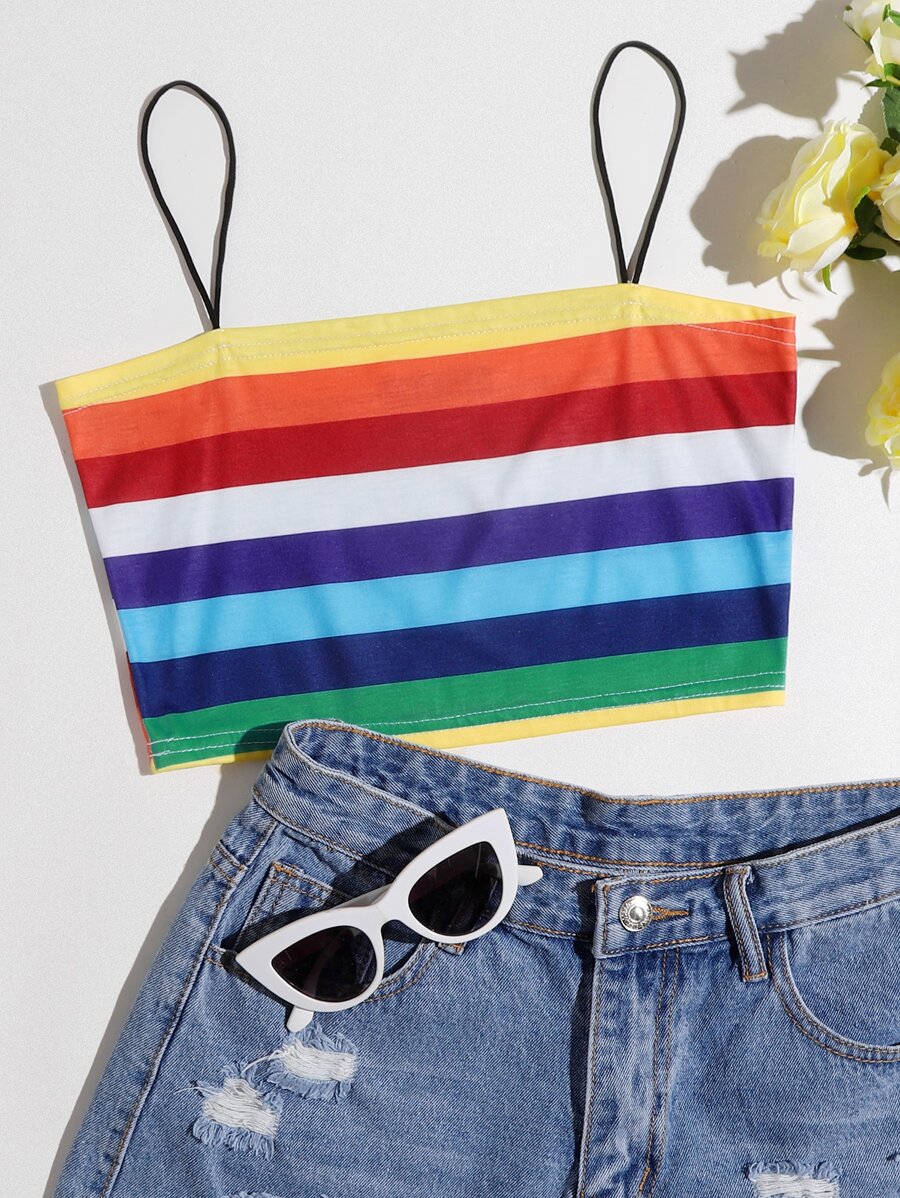 Top de tirantes corto de rayas de arcoíris