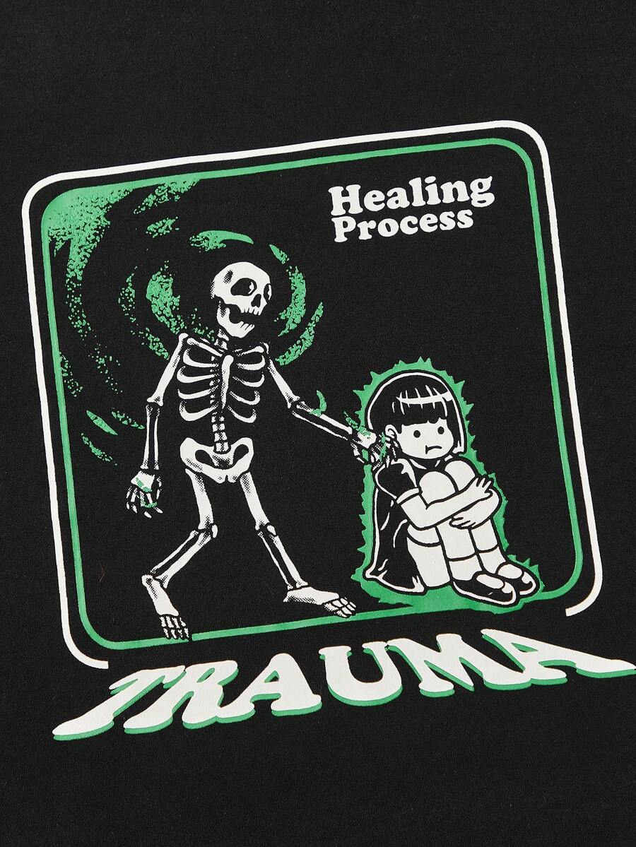 Rainydazed Camiseta unida en contraste estampado de esqueleto