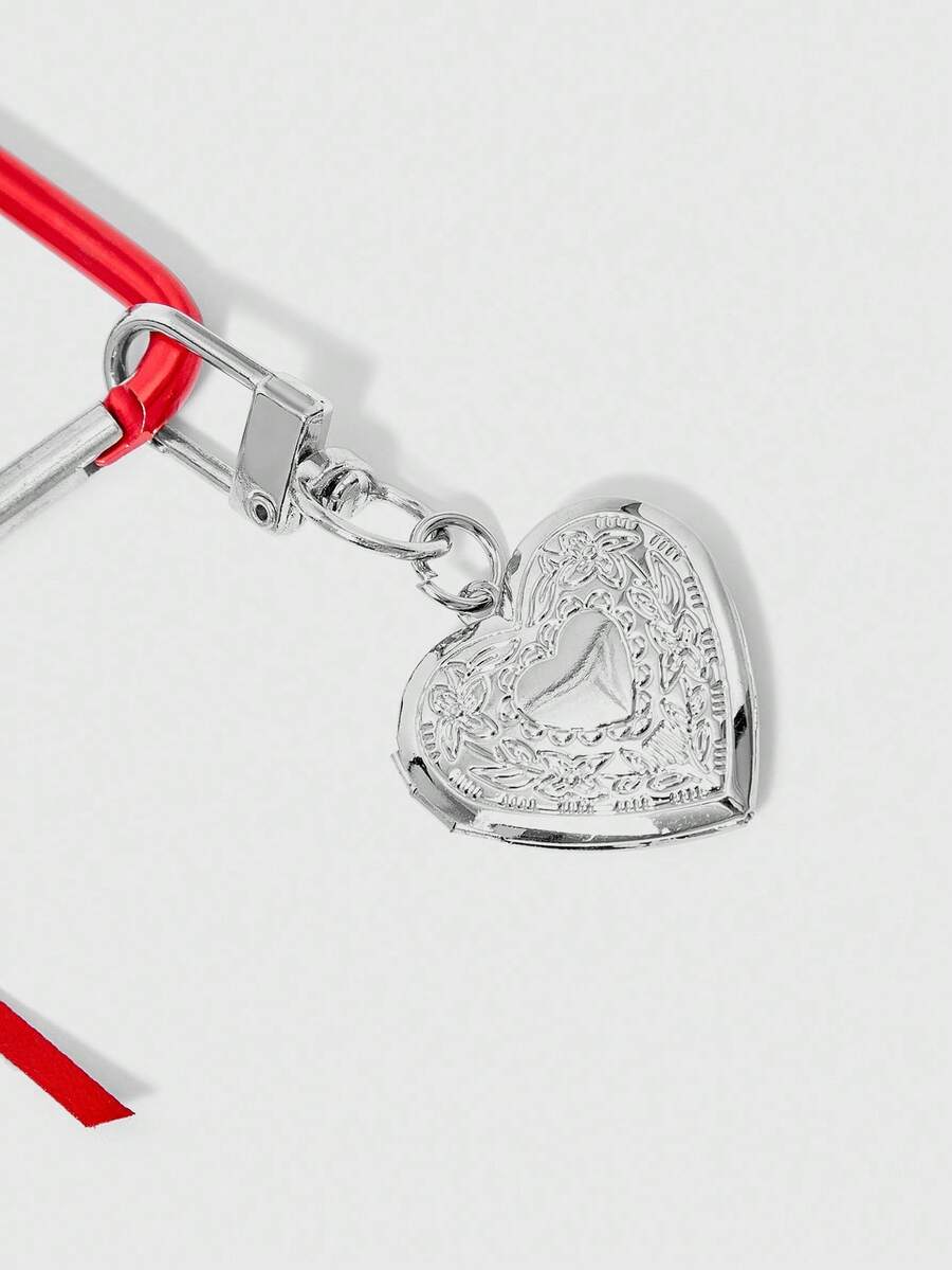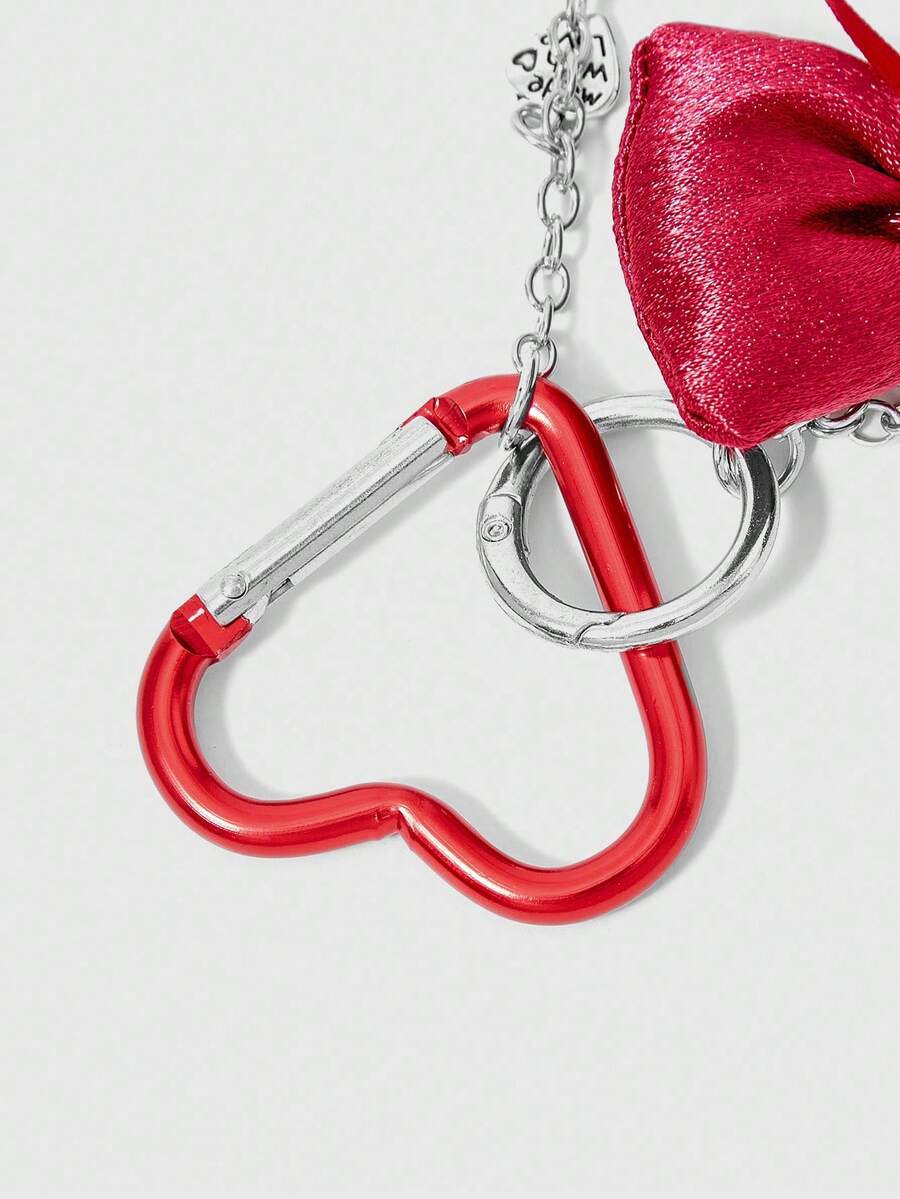 Kawaii Colgante de llavero con lazo de cinta en forma de corazón rojo, con hebilla en forma de corazón y decoración de lazo 3D - Adorno con dije de metal en forma de corazón