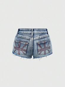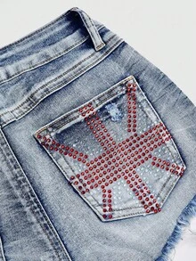 Grunge Punk Shorts vaqueros súper cortos con efecto desgastado y adornos de strass