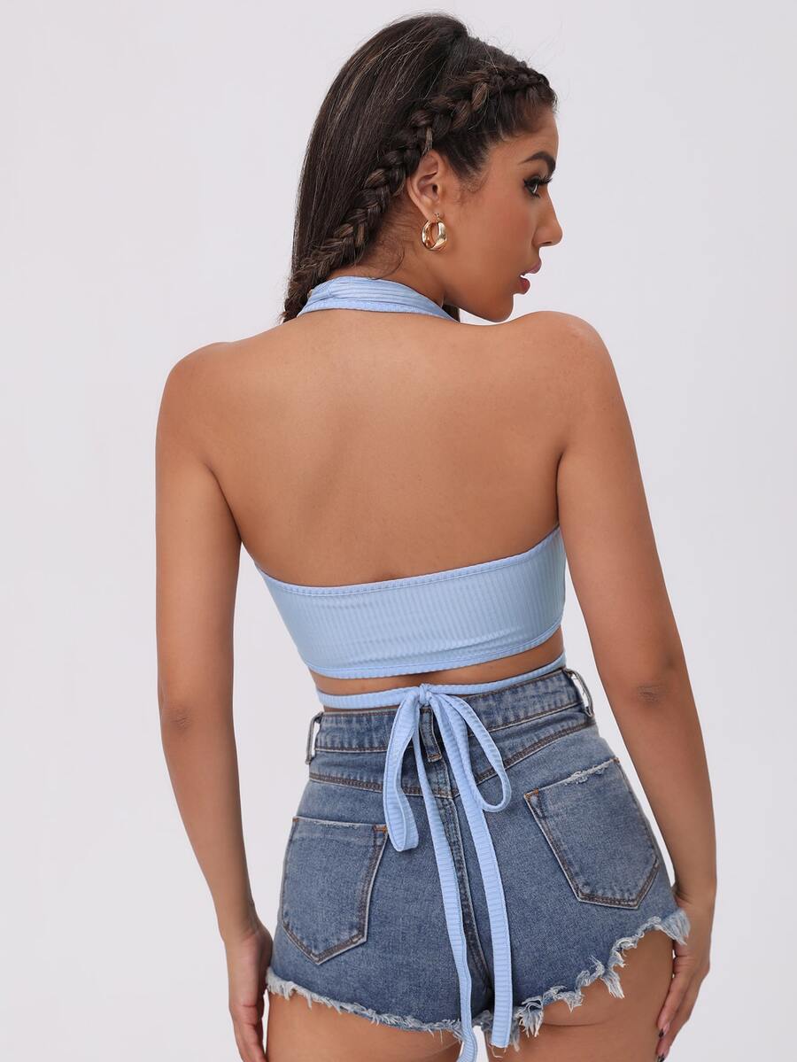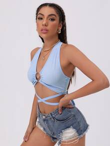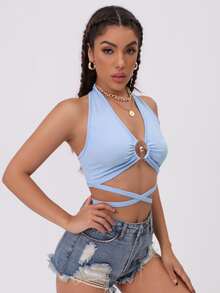 Top Halter Con Lazos Cruzados En La Espalda Y Anillo