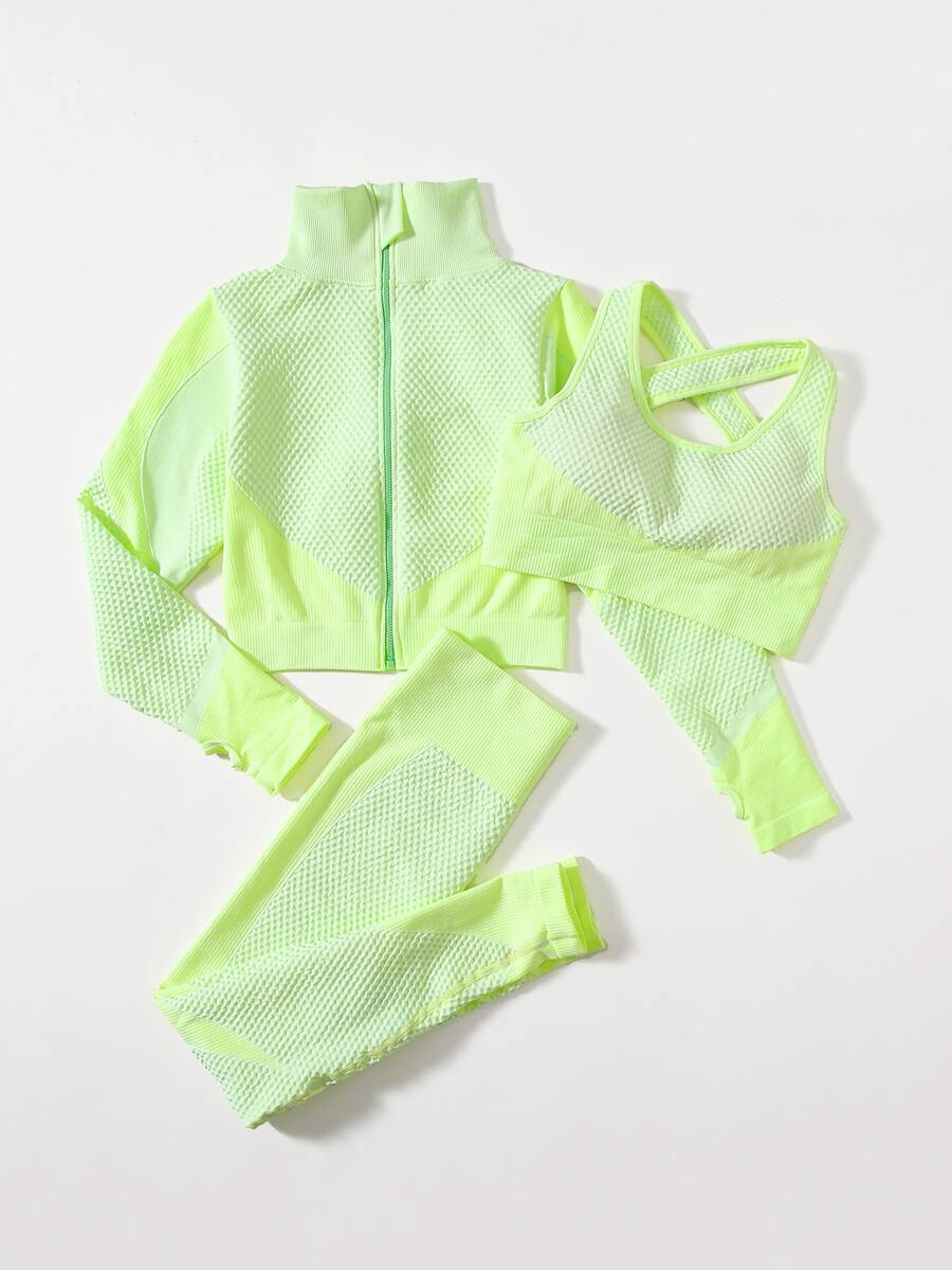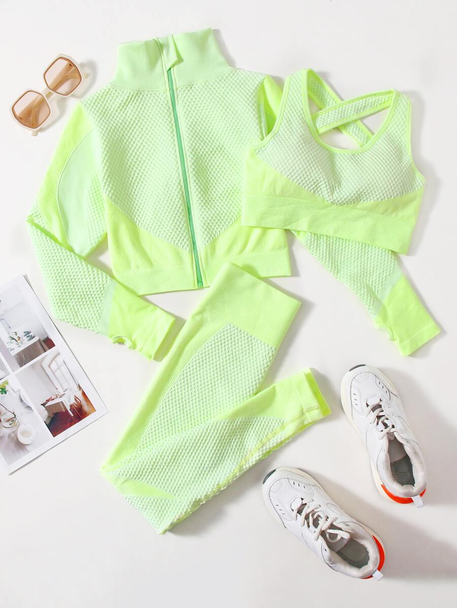 3 piezas sujetador deportivo con chaqueta deportiva con leggings deportivos