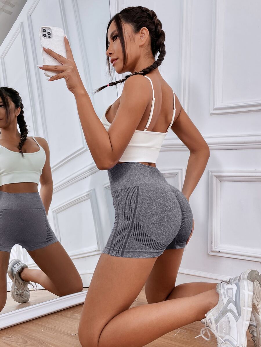Shorts deportivos inconsútil fruncido de cintura ancha