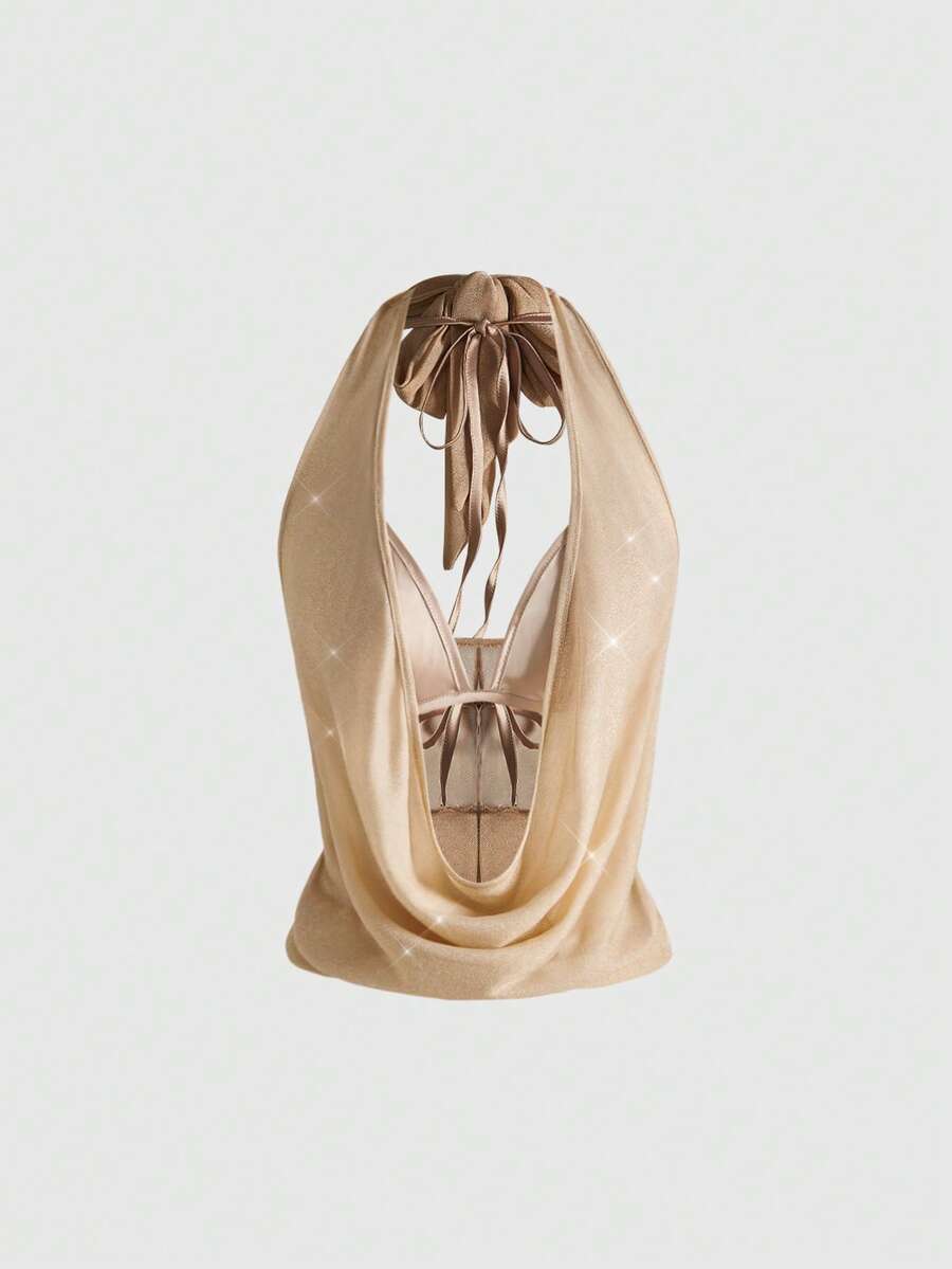 Top sin espalda con cuello drapeado sexy para mujer para fiesta