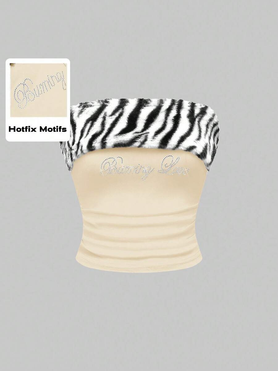 J-Fashion Top corto ajustado de punto con estampado de cebra y parches, inspirado en la subcultura de Shibuya, para mujeres