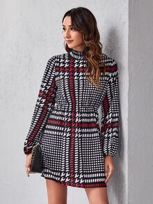 Vestidos Botón Pata de Gallo Elegante