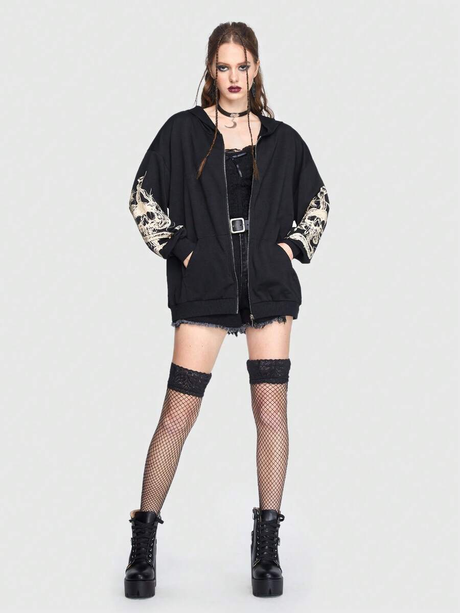 Capucha con cremallera de cráneo & con estampado de serpiente