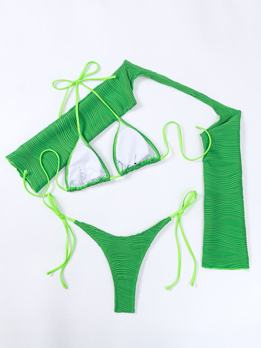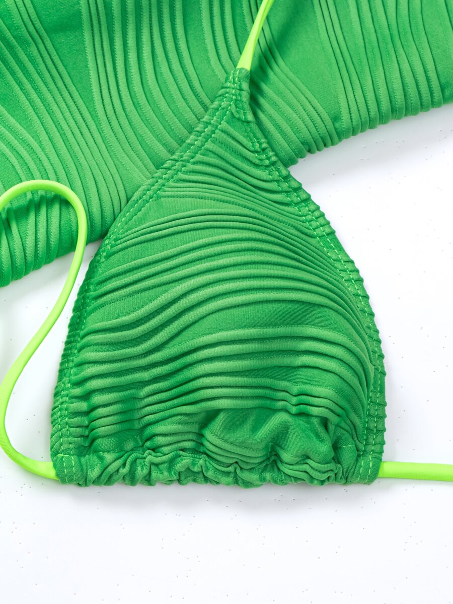Conjunto de bikini de un solo color con parte superior tipo halter en triángulo y Bottom con atar a los lados, y top corto superchic, 3 piezas para bikini de verano y playa