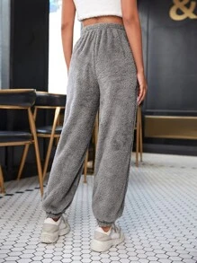 Pantalones teddy de cintura elástica unicolor