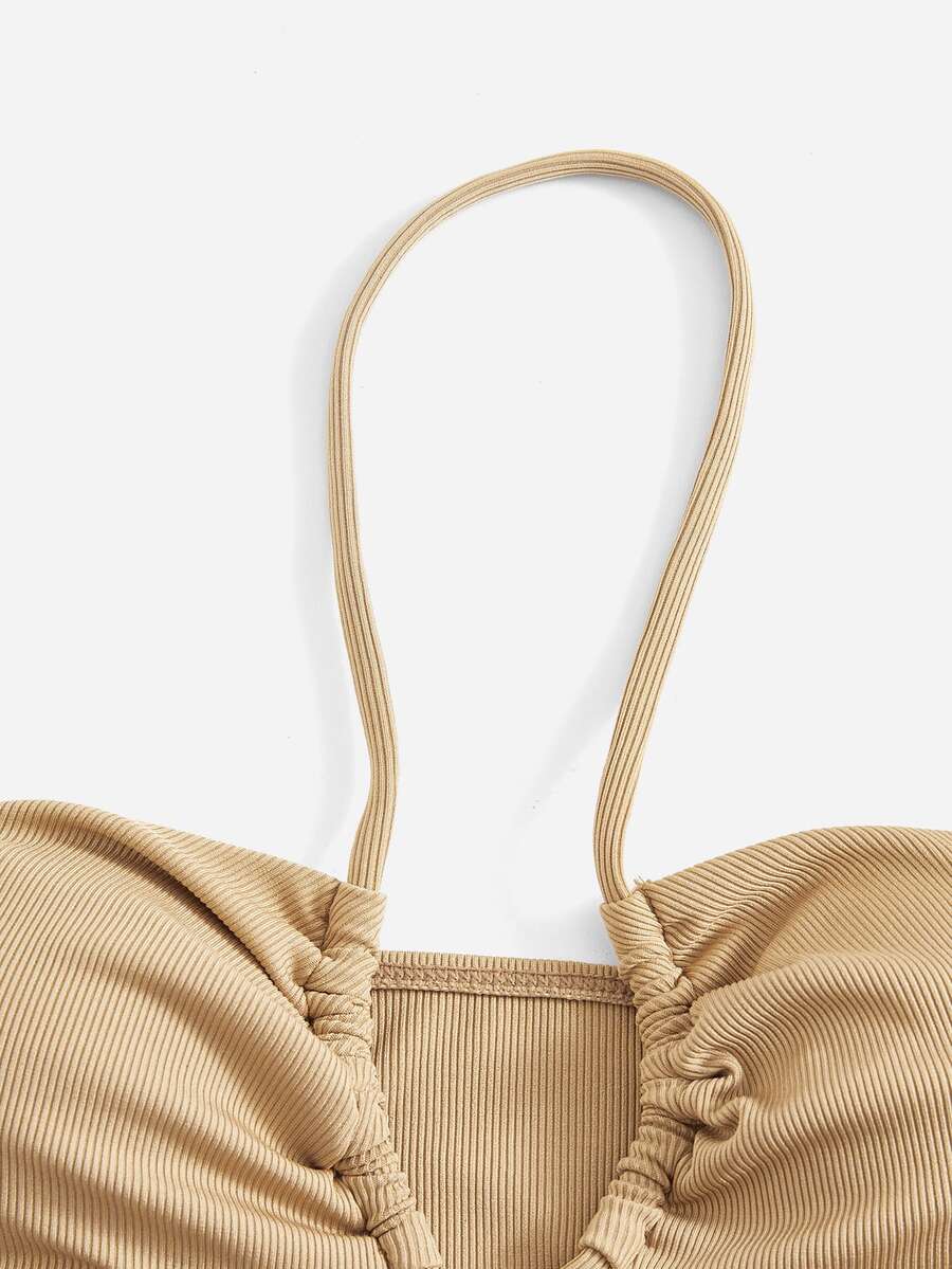 Top bikini halter unicolor con cordón