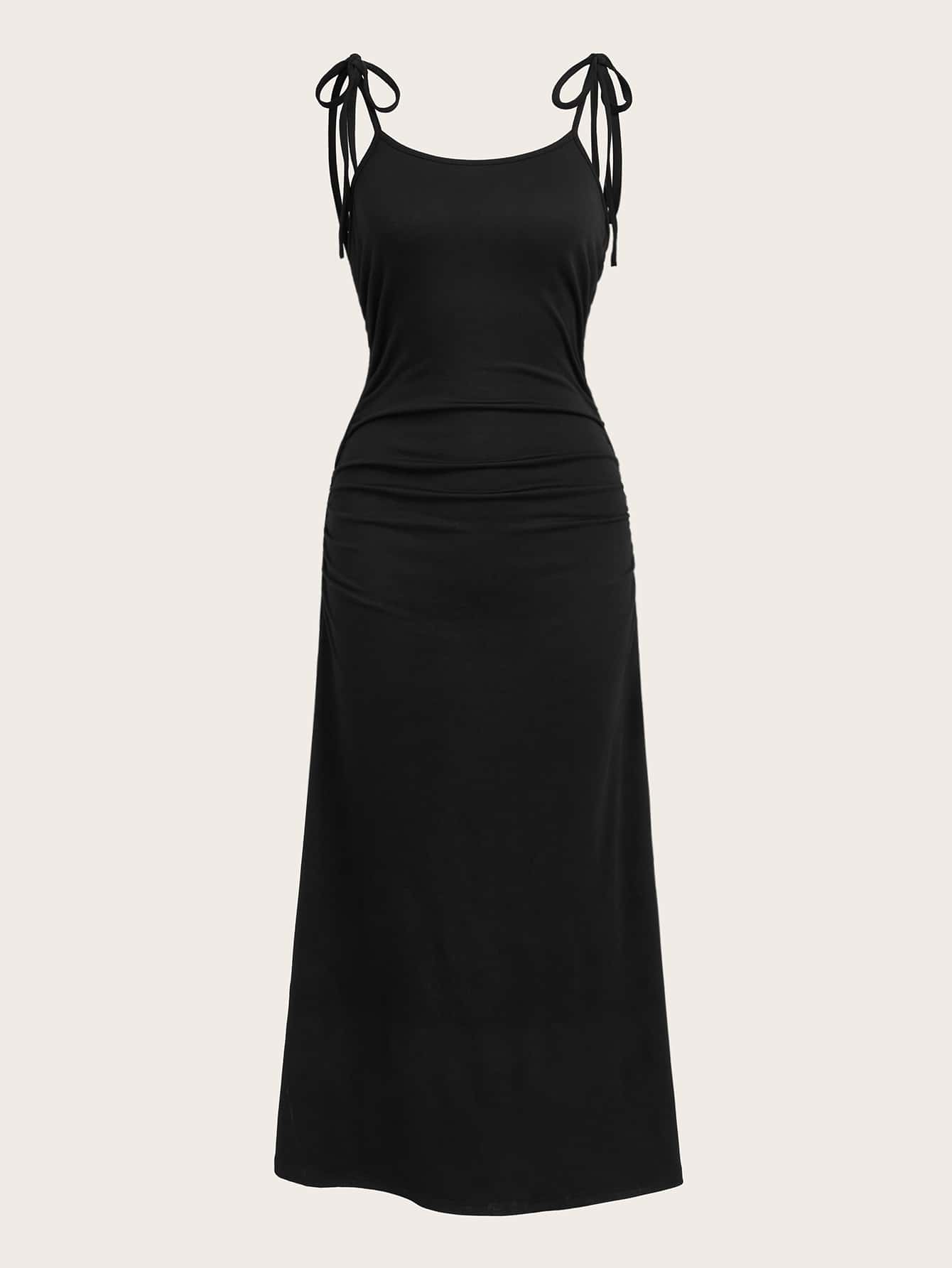 Vestido de tirantes unicolor de hombros con cordón