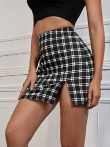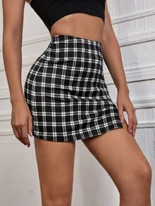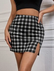 Faldas Partición A cuadros Sexy