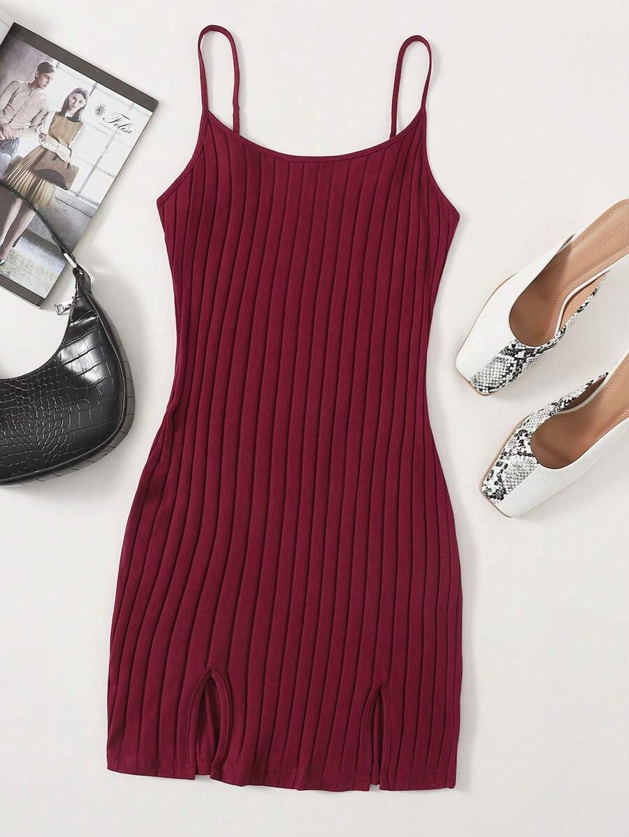 Vestido tejido de canalé bajo con abertura