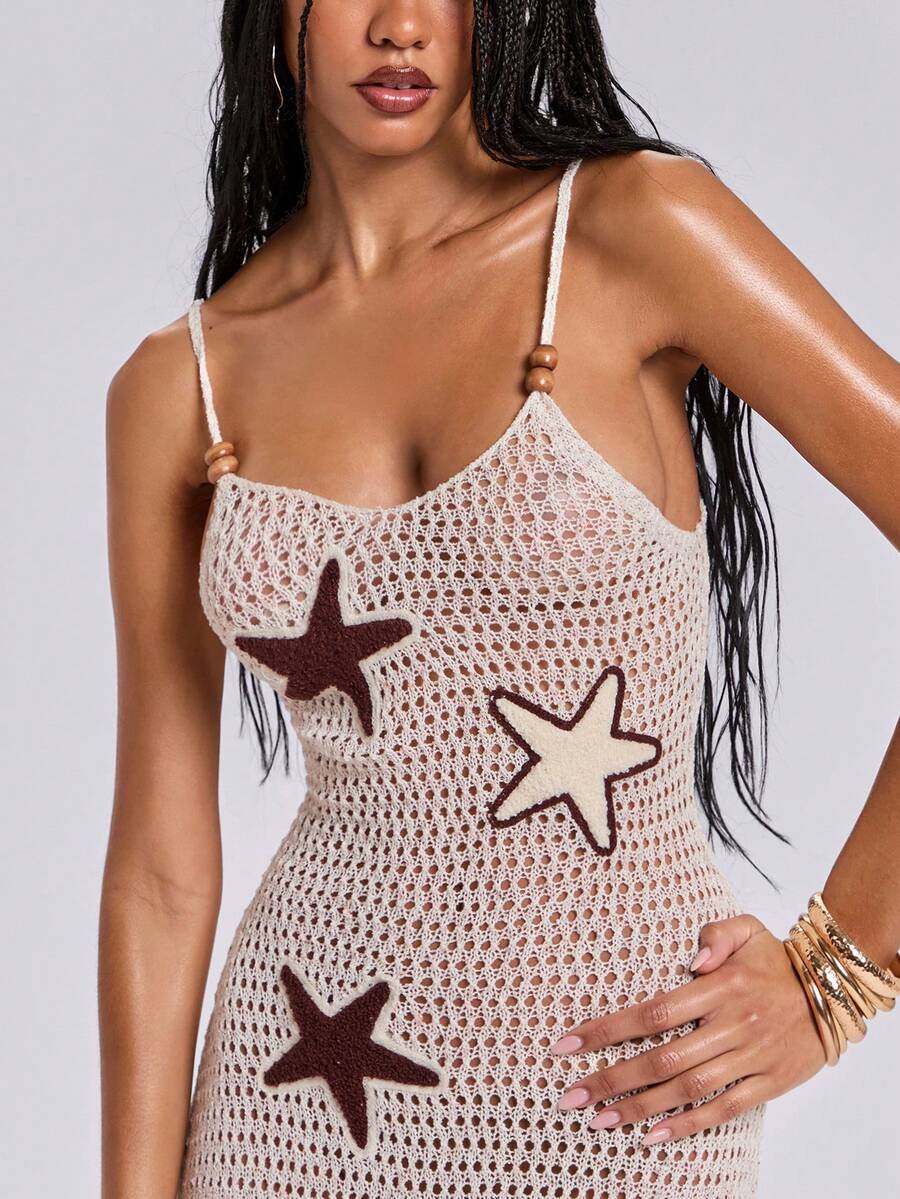 Vestido de tirantes de mujer con patrón de estrella de mar hecho a mano de estilo de vacaciones y sexy