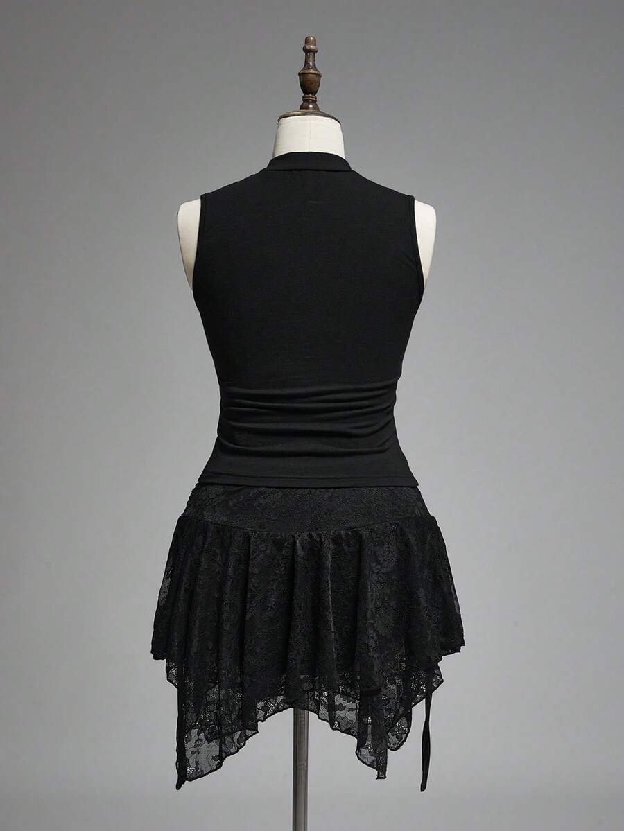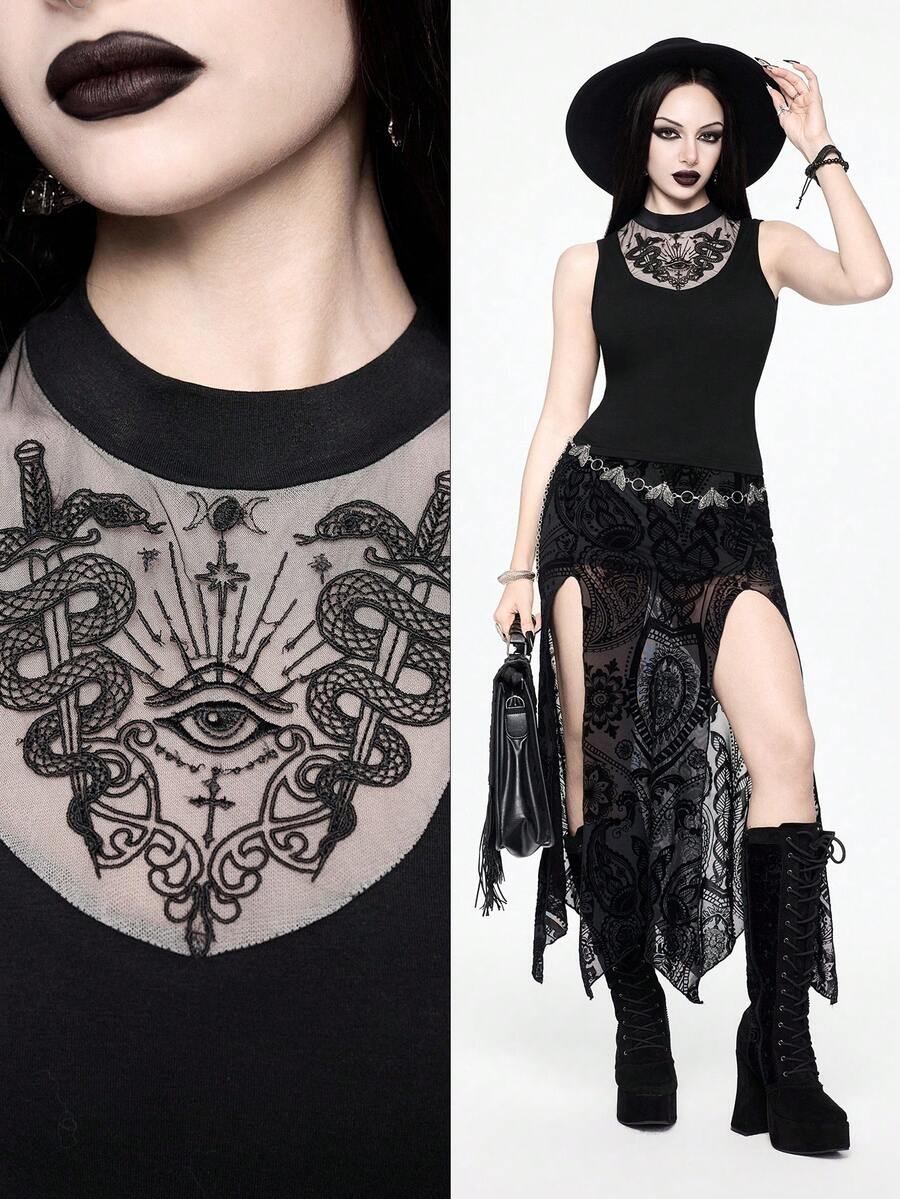 Goth Camiseta ajustada de cuello alto con diseño hueco de ojo de serpiente estilo gótico bohemio