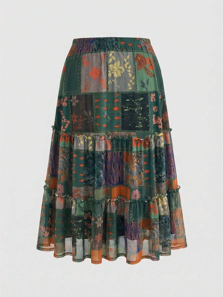 Falda casual con estampado floral de talla grande
