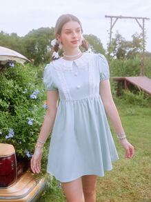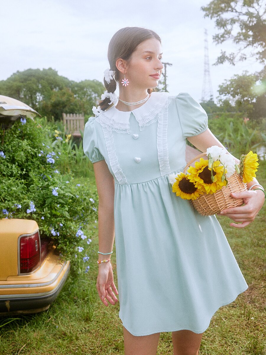 Vestido de cuello exagerado ribete fruncido