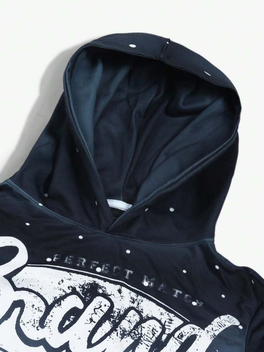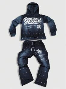 Street Life Set de 2 piezas, sudadera con capucha casual con impresión de letras y pantalones rectos para hombre