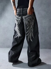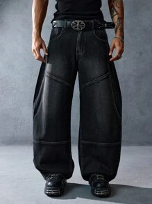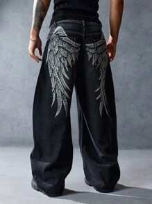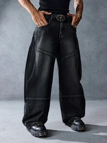 Street Life Jeans rectos y sueltos con botones para hombre, con efecto desgastado, adecuados para uso diario