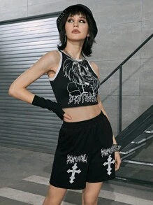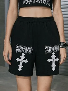 Street Life Shorts deportivos cruzado & con estampado de letra