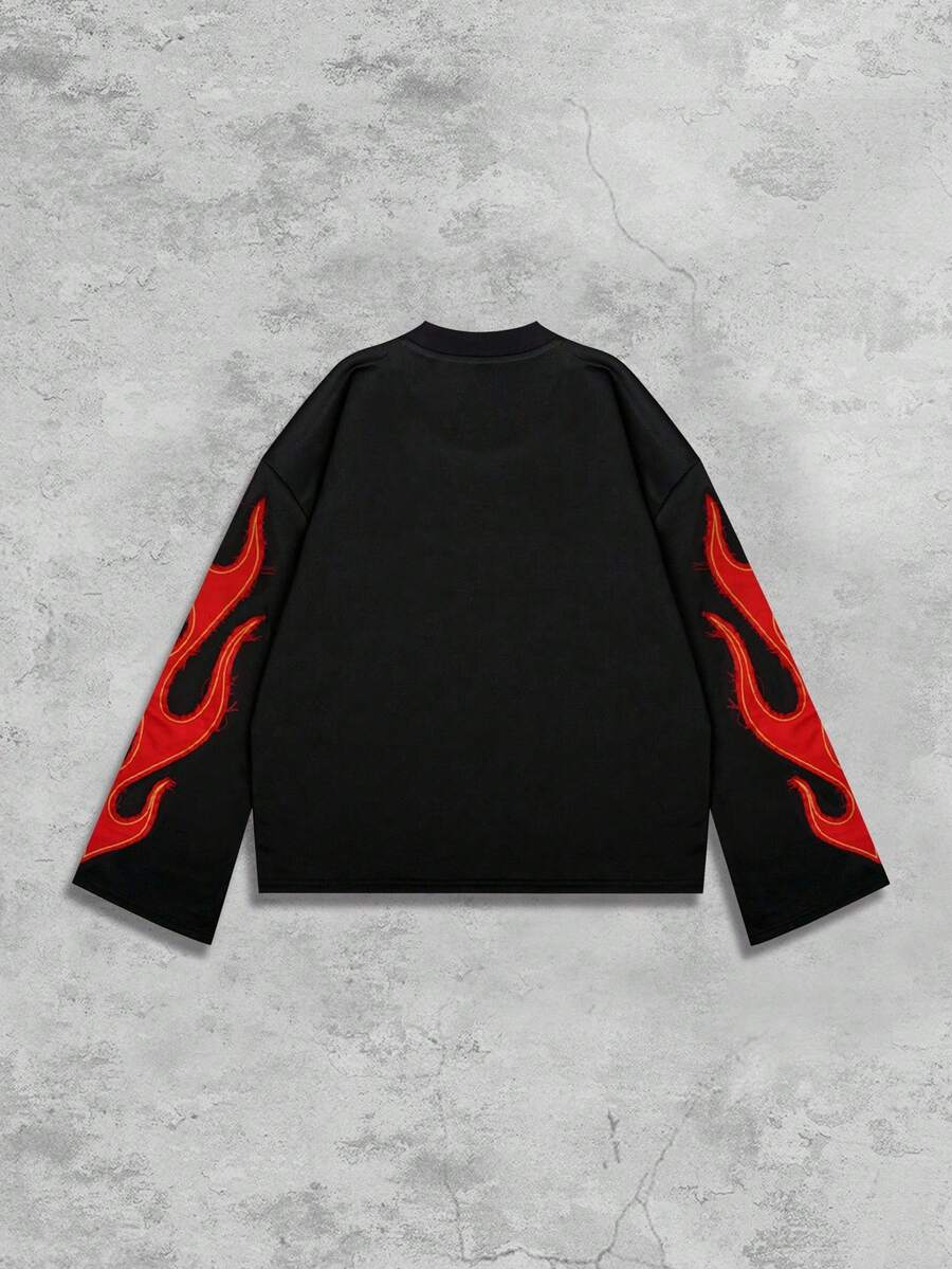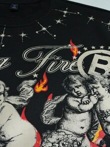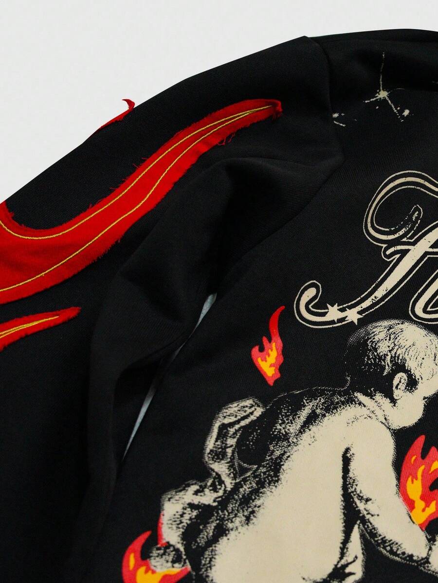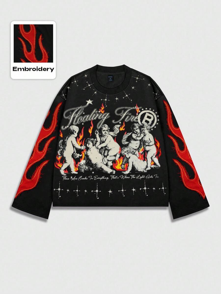 Street Life Camiseta de manga larga con bordado de ángeles desgastada para hombre, otoño