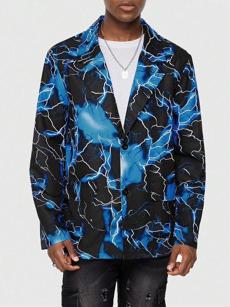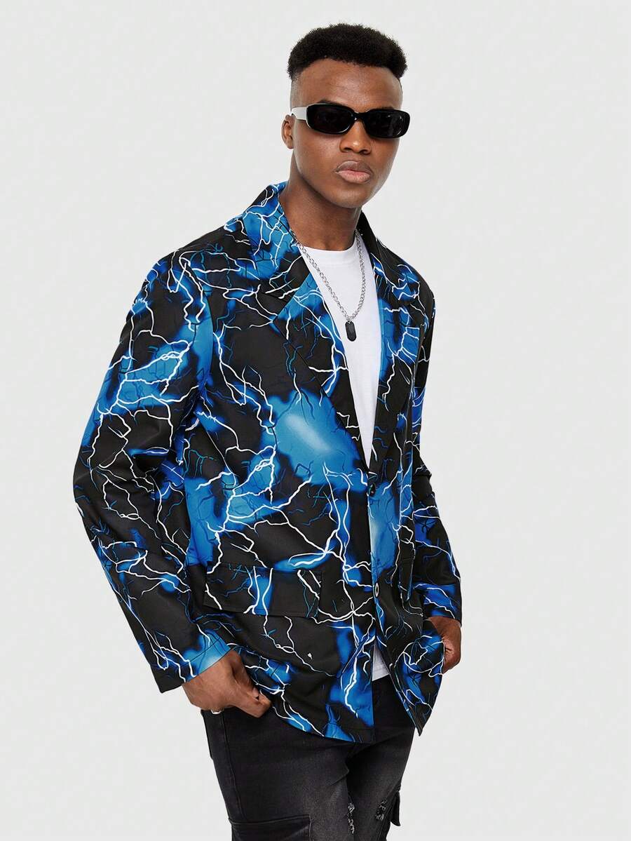 Street Life Hombres Blazer con estampado de cuello con solapa