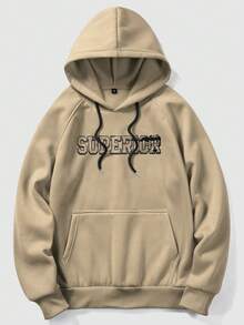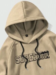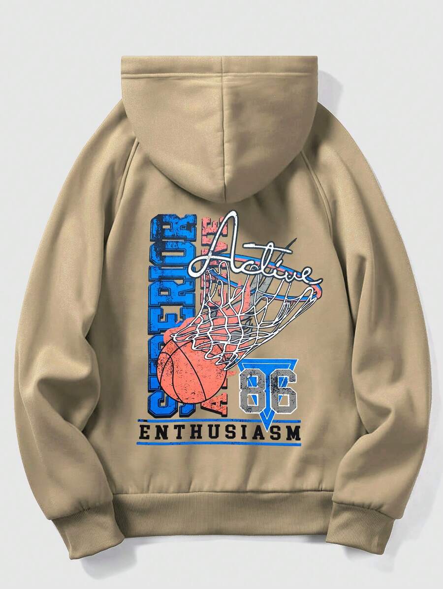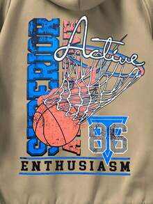 Street Life Hombres Capucha con estampado de baloncesto y letra de manga raglán con cordón con forro térmico