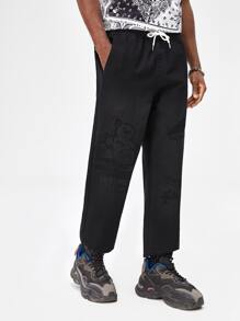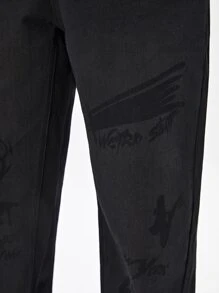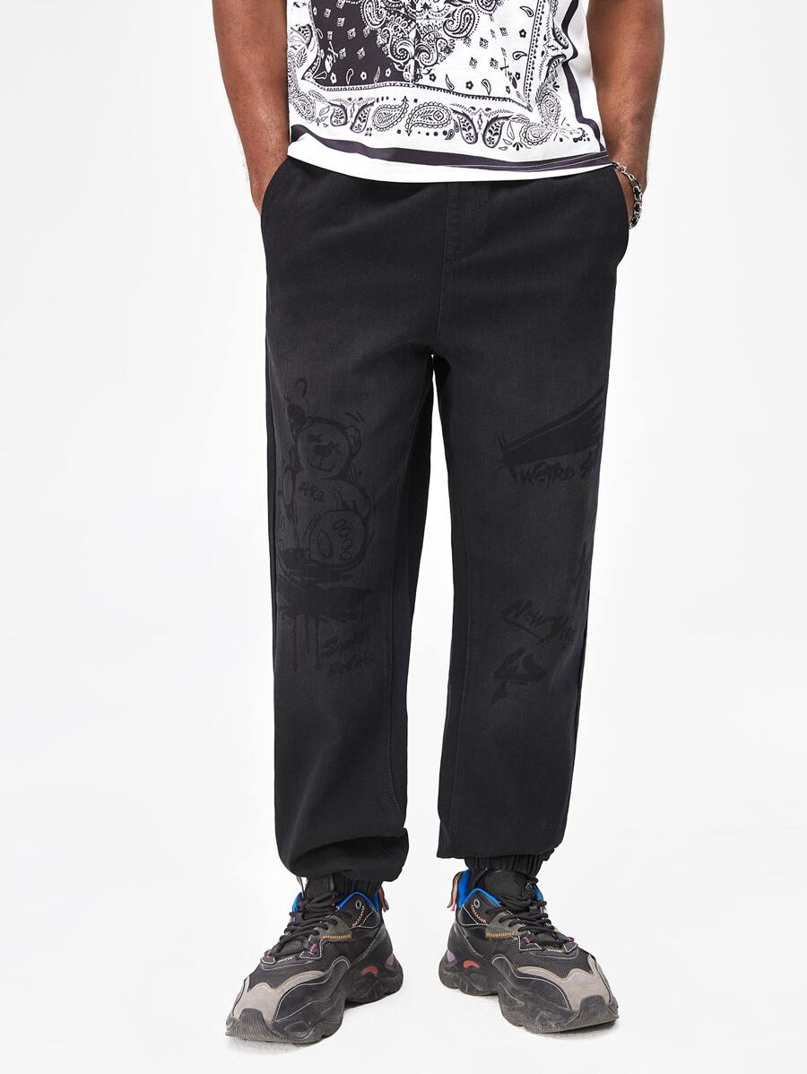 Street Life Hombres Jeans oso con estampado de letra con bolsillo oblicuo