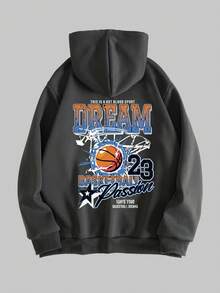Street Life Hombres Capucha con estampado de coche y letra con cordón con forro térmico