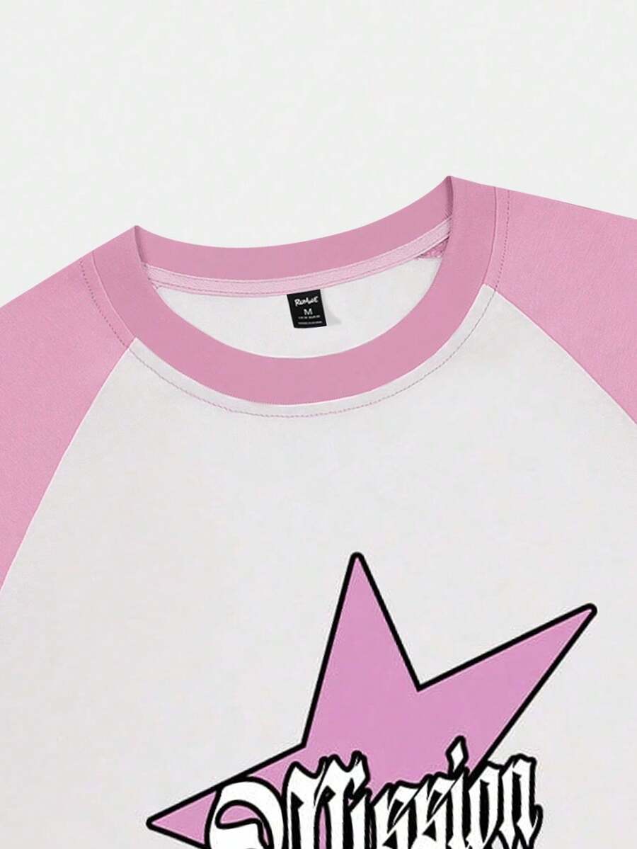 Prep Camiseta escolar con estampado de estrella de manga raglán de color block para hombres