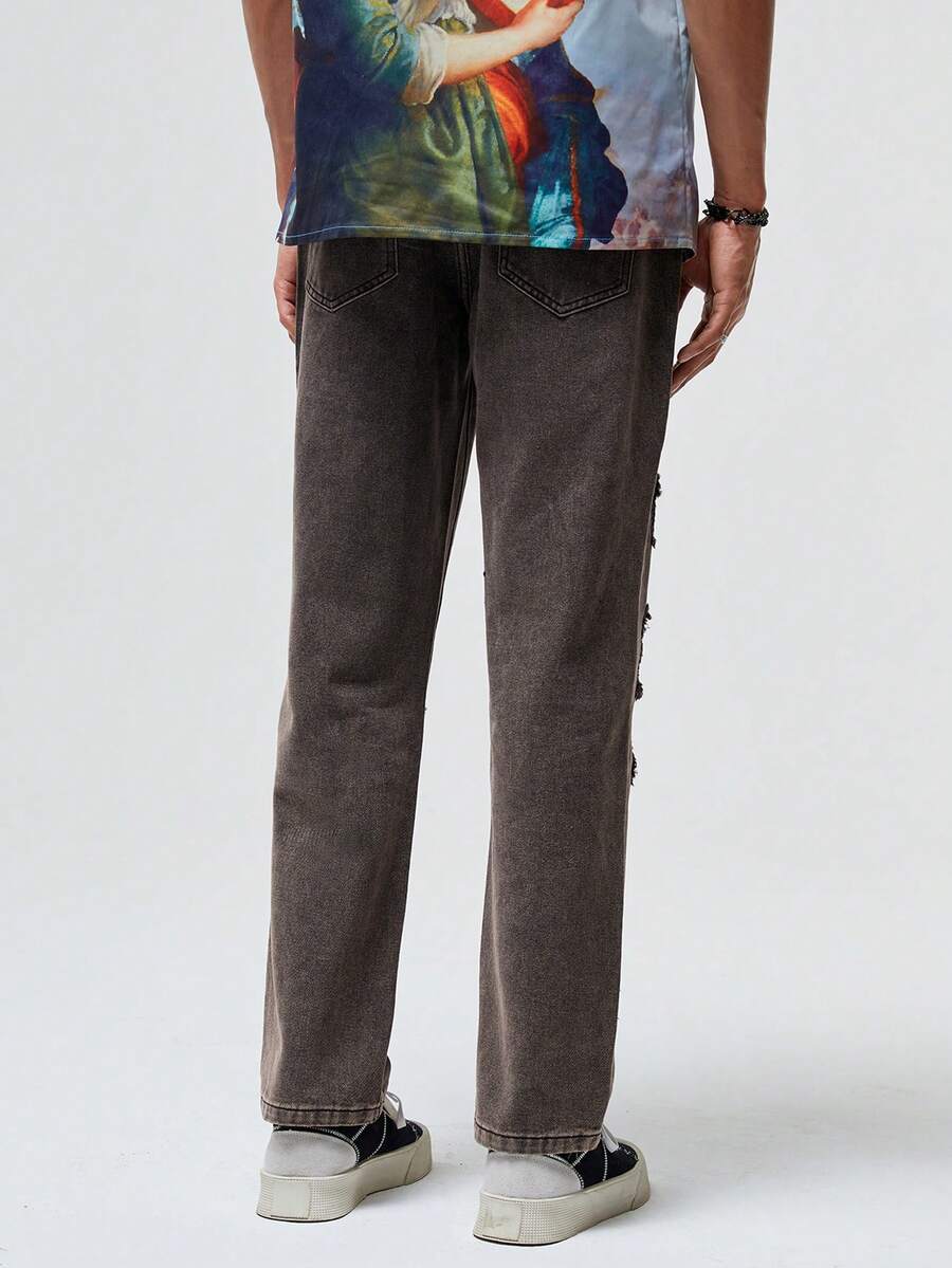 Street Life Hombres Jeans de pierna recta algodón desgarro